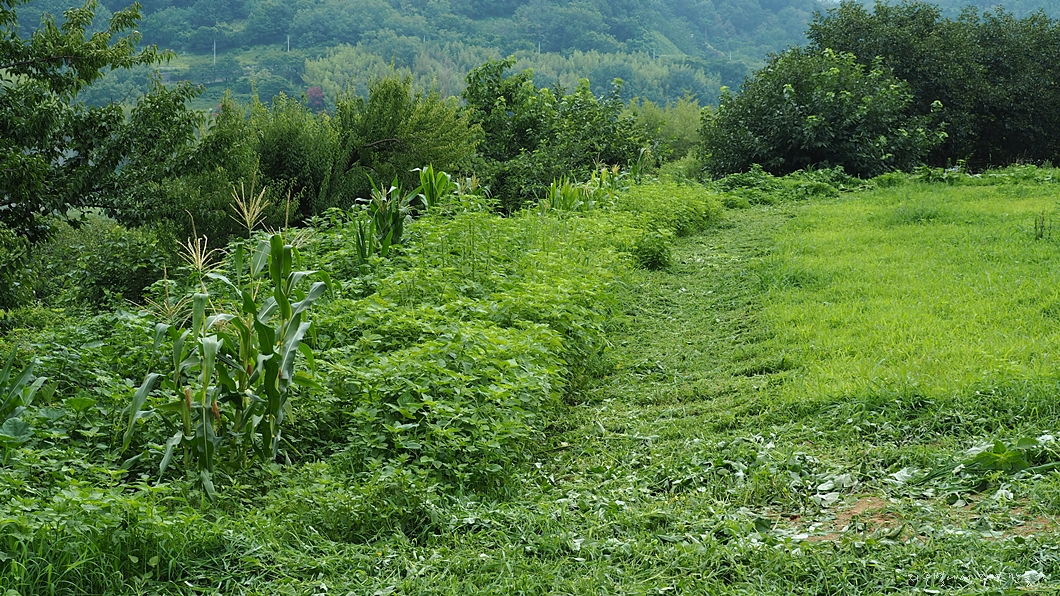 들깨와 강냉이와 호박이 심어져 있는 구역을 빼고.