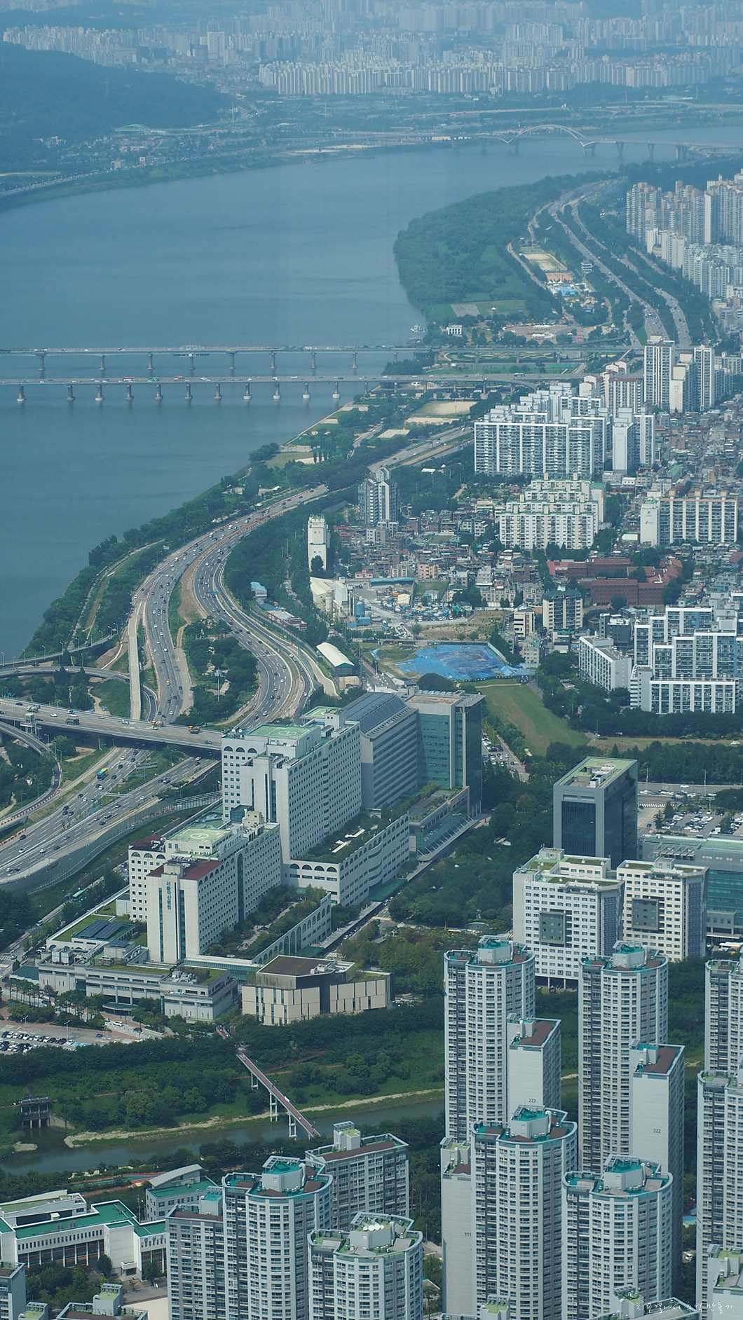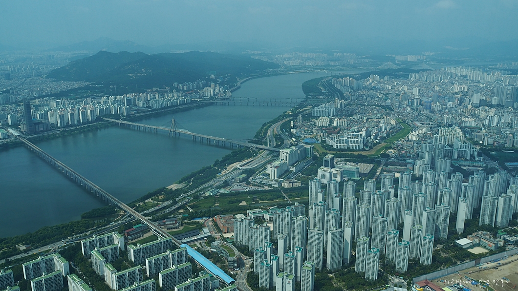 앞쪽 창으로 한강이 내려다 보입니다.