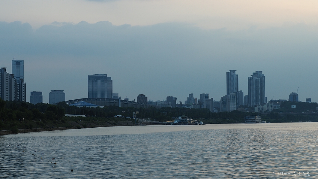 잠실 운동장이 보이는 한강변.