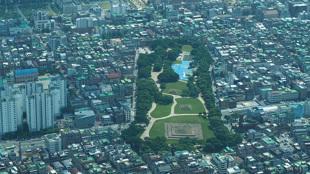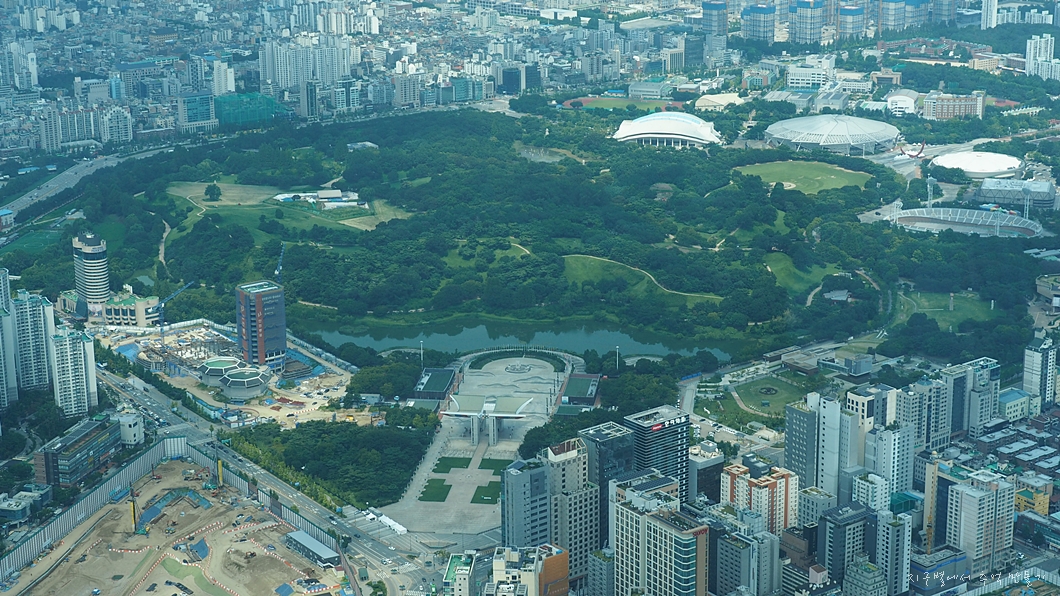 올림픽 공원의 풍경이 여름 모습으로 싱그럽게 내려다 보입니다.