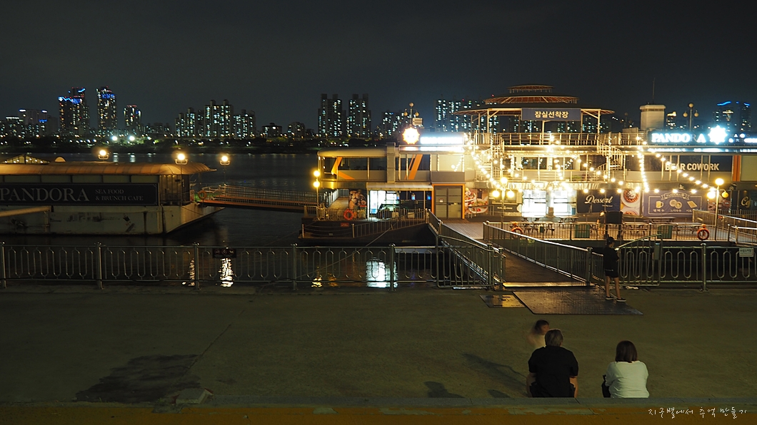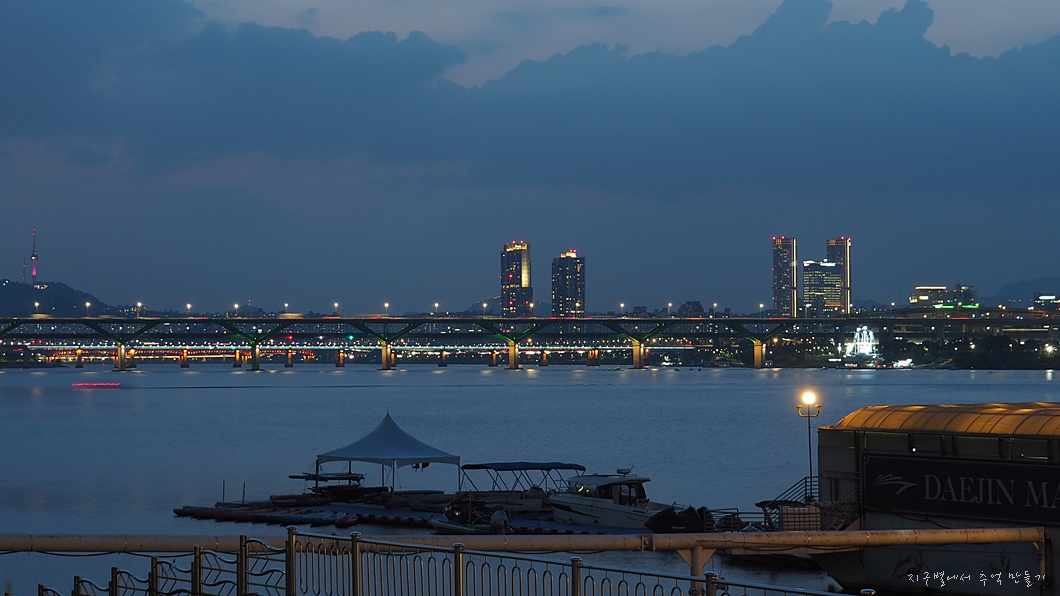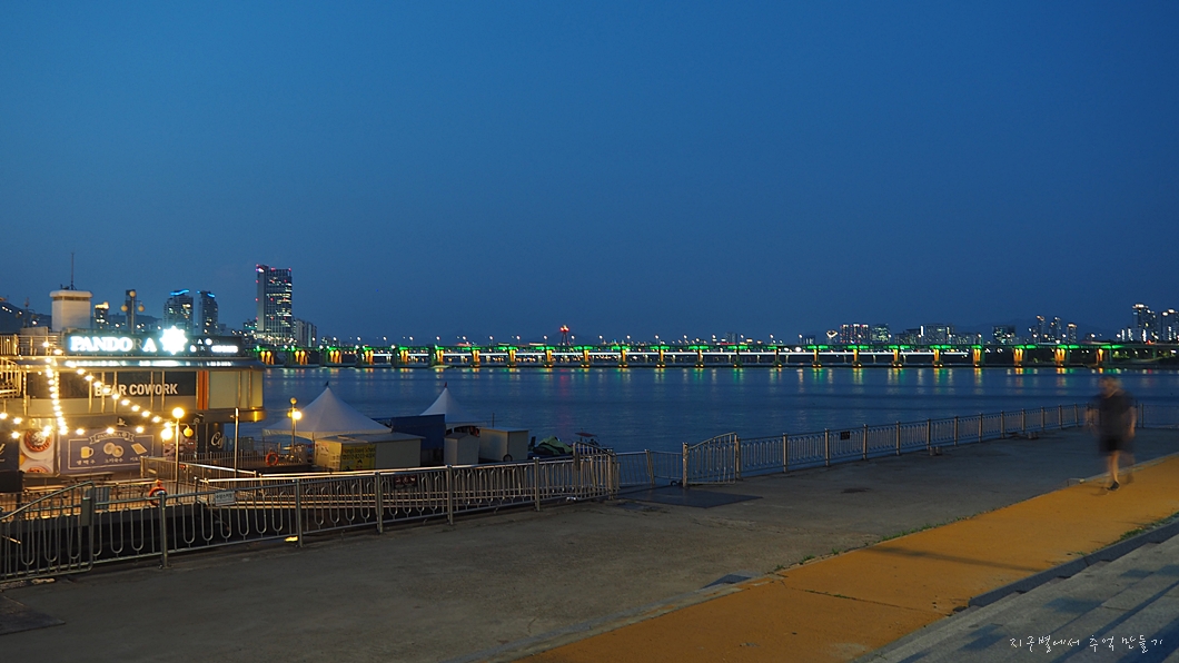 통닭과 막걸리 두어병 사서 바닥에 자리 깔고 한강 야경 구경.
