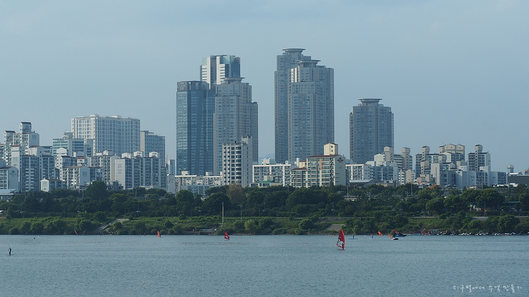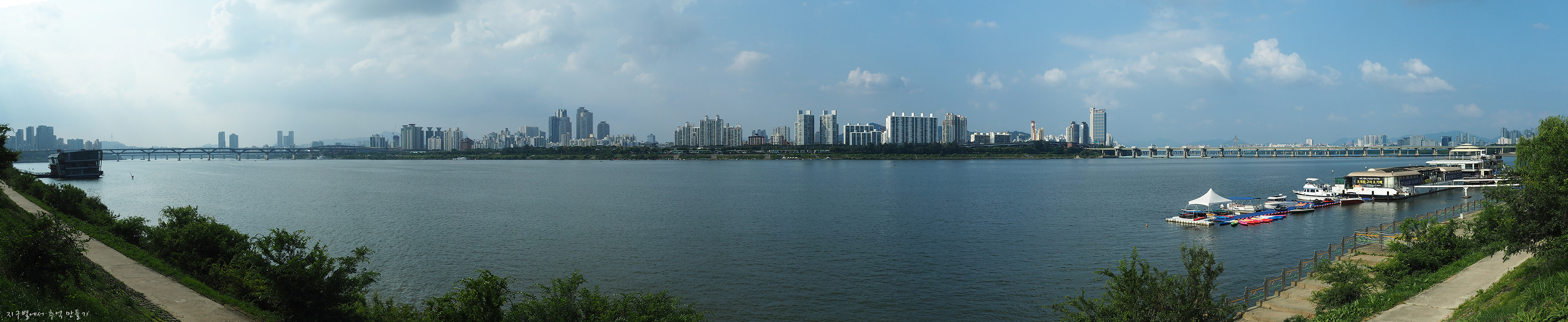 잠실 한강공원 둑에서 바라 본 한강 파노라마.