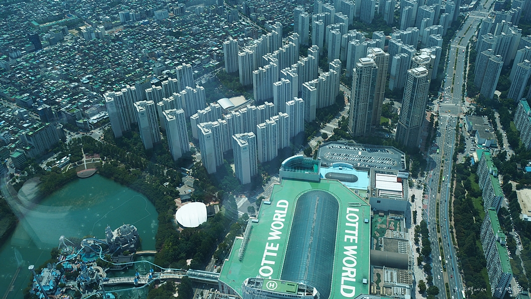 석촌못에 있는 놀이 시설이 내려다 보이구요.