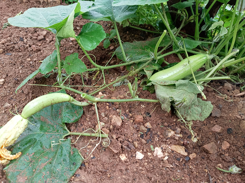 텃밭 가장자리에 무심히 심은 호박이 비료도 안 줬는데.. 잘 자랍니다.