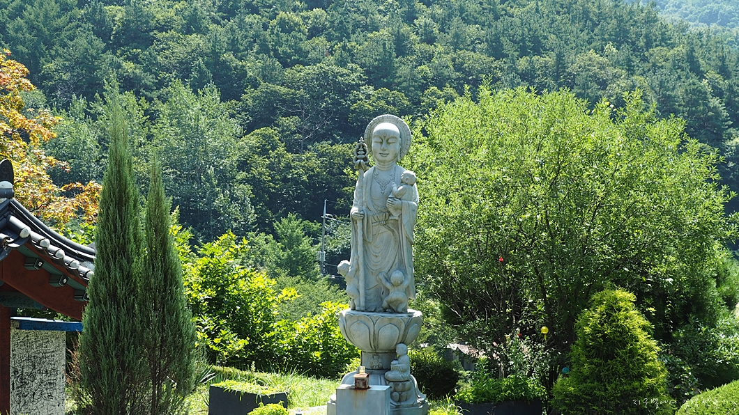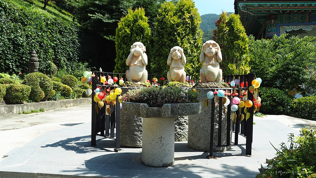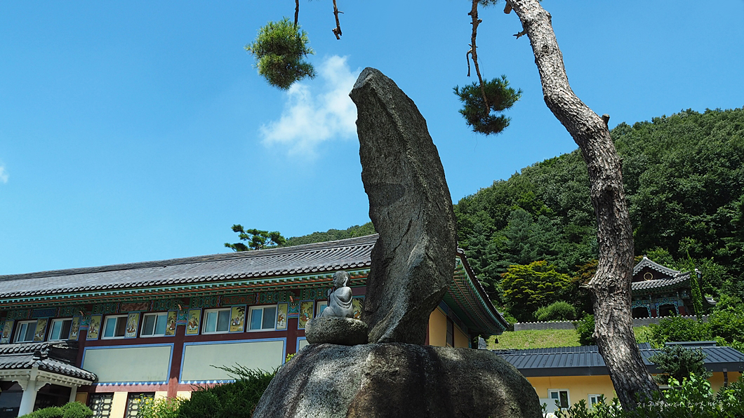 대웅전으로 올라가는 길 옆에는 눈 뗑그랗게 뜨고 째리보는 도반이 있는데 날씨가 너무 더워 시비 걸지 않고 그냥 지나갑니다.