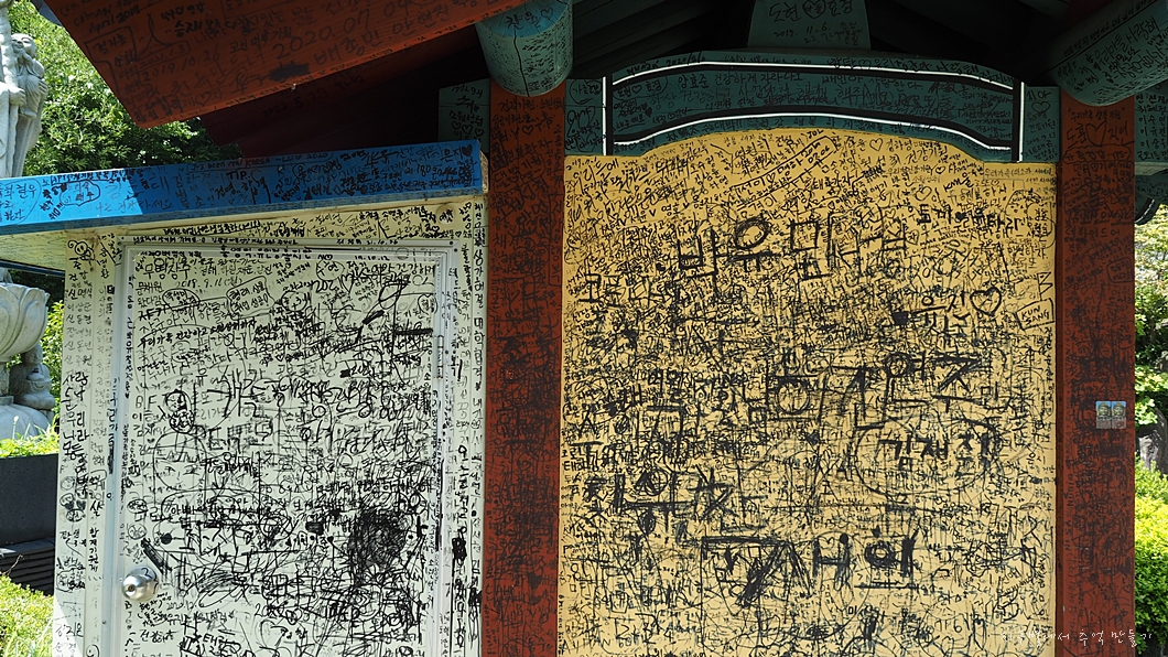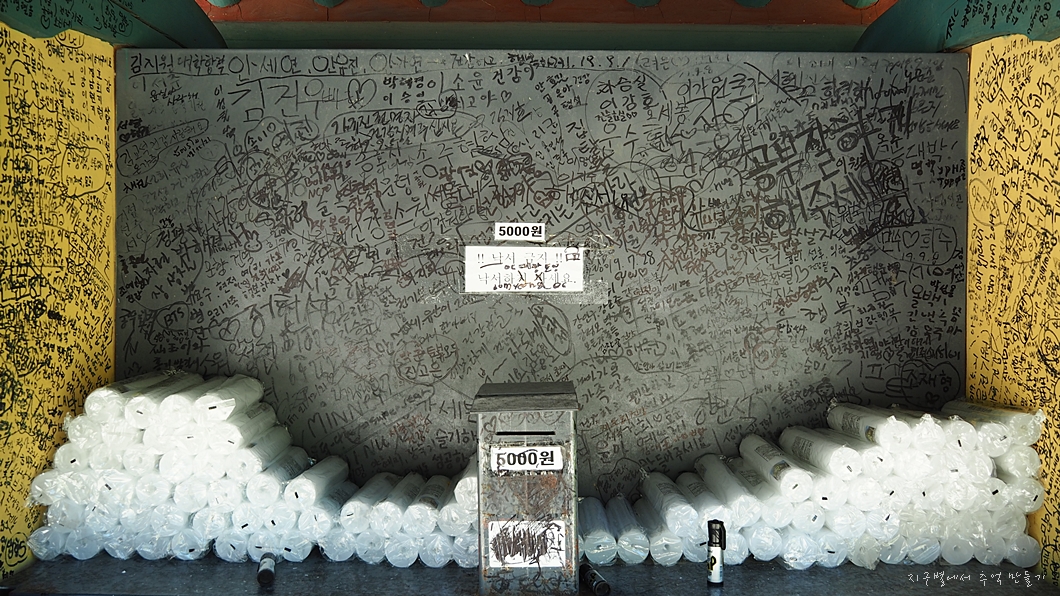 촛불 보시 안내각에 뭔 낙서가 잔뜩 되어 있는데..