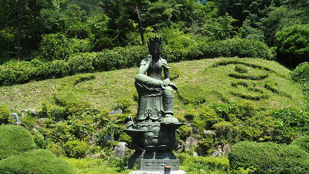 비록 짝퉁이지만 우리나라 최대 크기를 자랑하는 미륵보살반가사유상이 대웅전 옆에 있습니다.