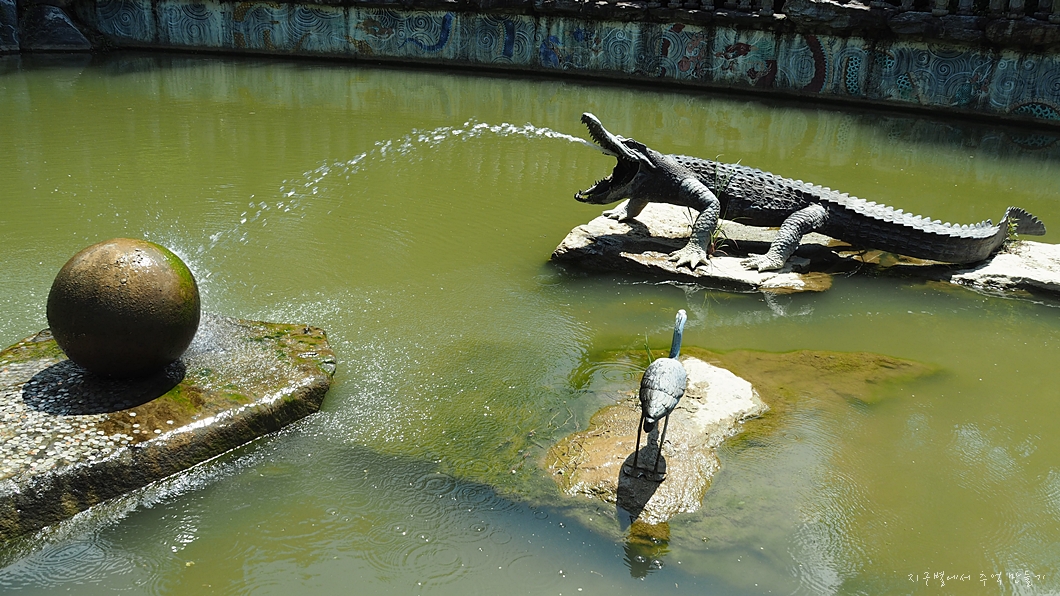 연못 위에 몸체 없이 머리만 뎅그러이 놓여져 있는 형태인데 높이가 8m로서 상당히 큽니다.