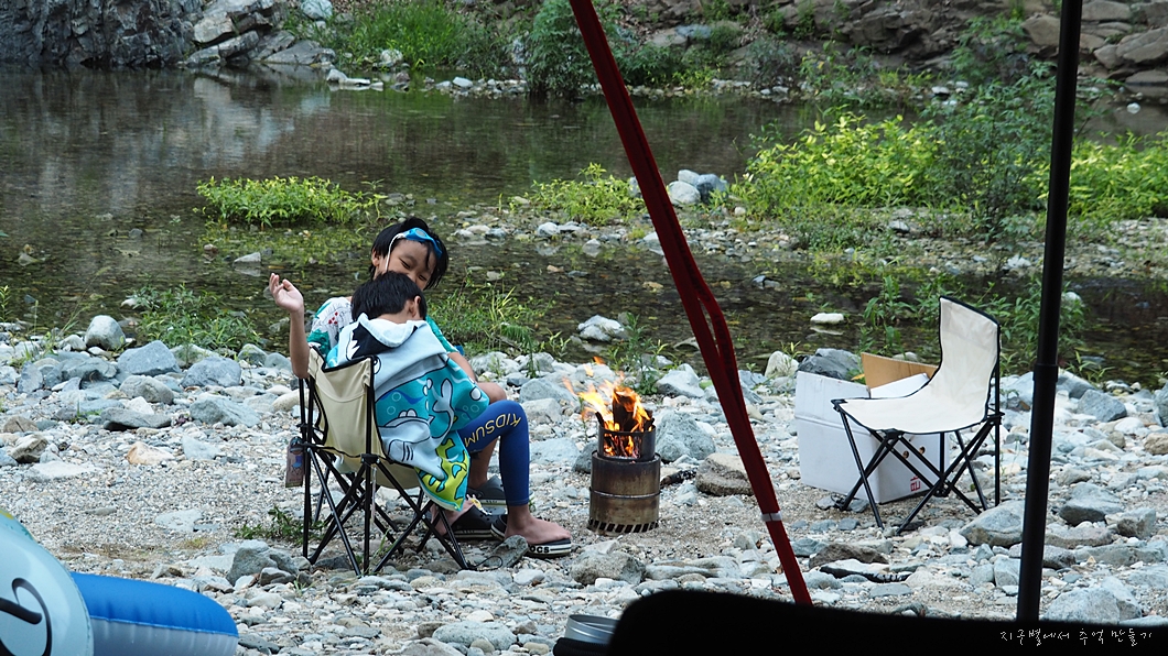 물에서 한참 놀다가 들어 온 아이들을 위해서 모닥불은 항상 피워 놓아야 합니다.