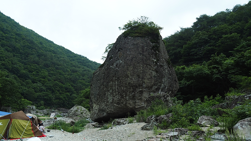 계곡 가운데 있는 커다란 이 바위가 궁금하네요.