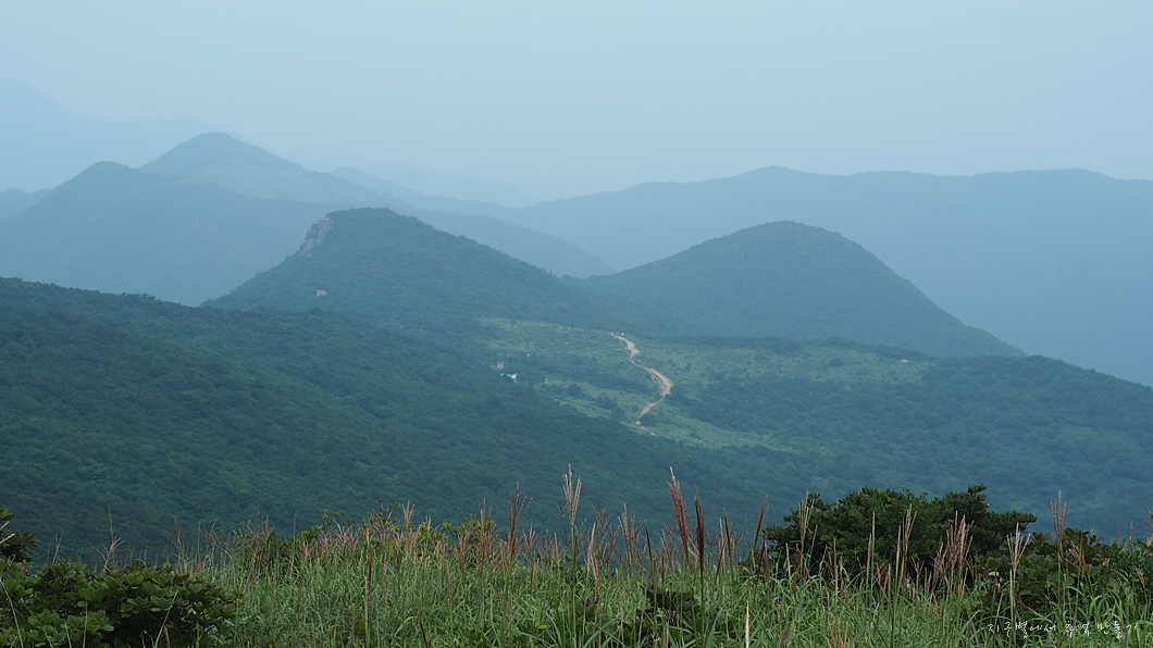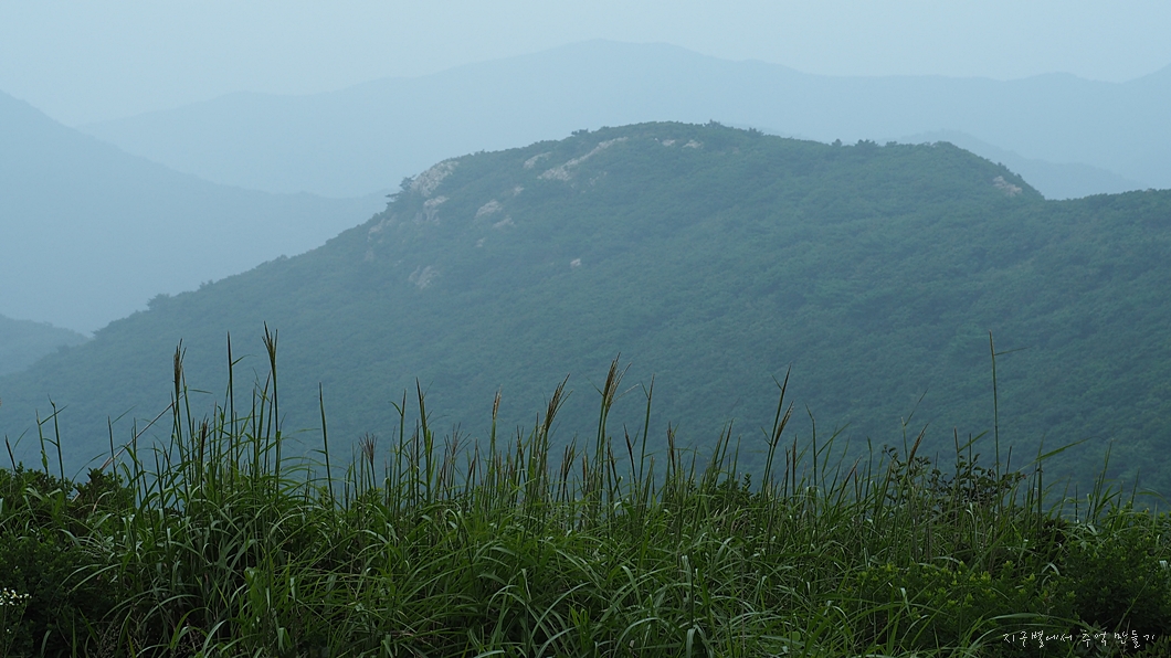 멀리 간월 신불 능선이 습기에 가려 희미하게 보입니다.