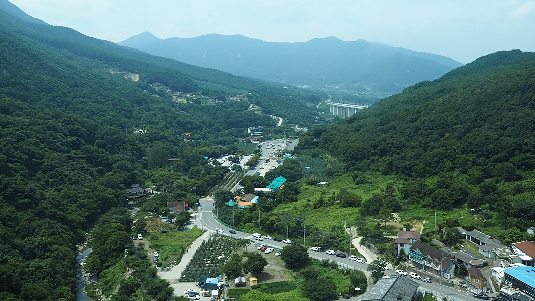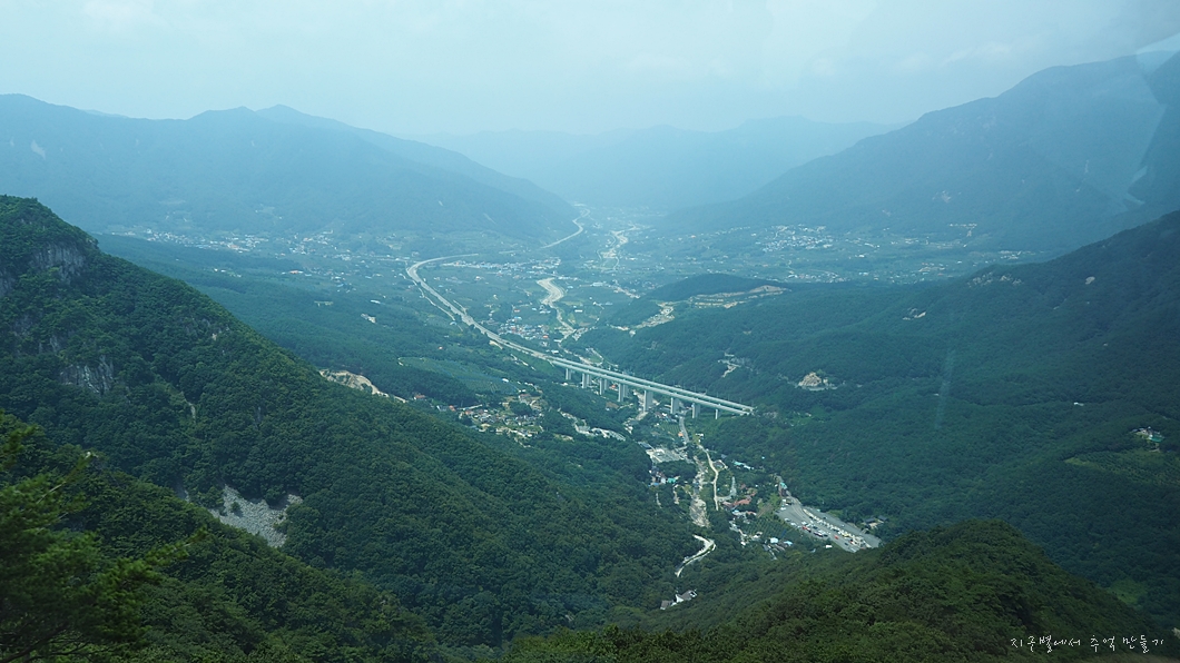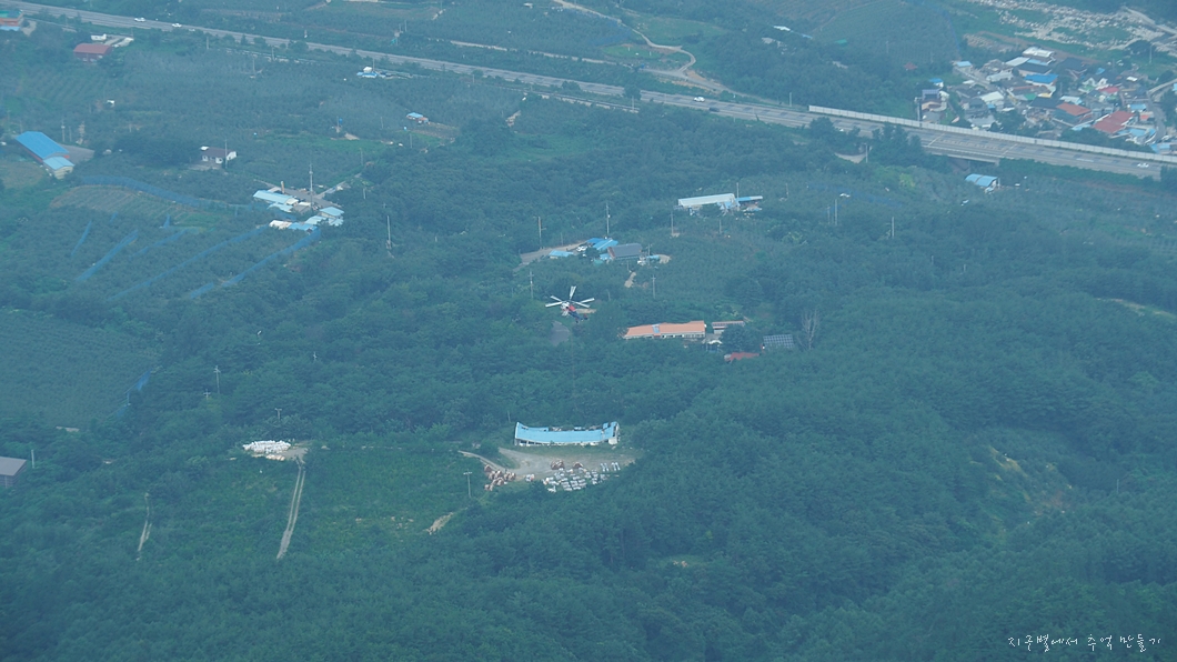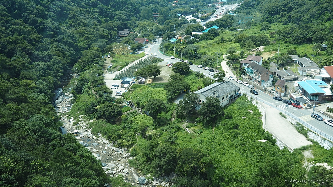 케이블카 상부 정류장이 있는 곳이 내려다 보입니다.
