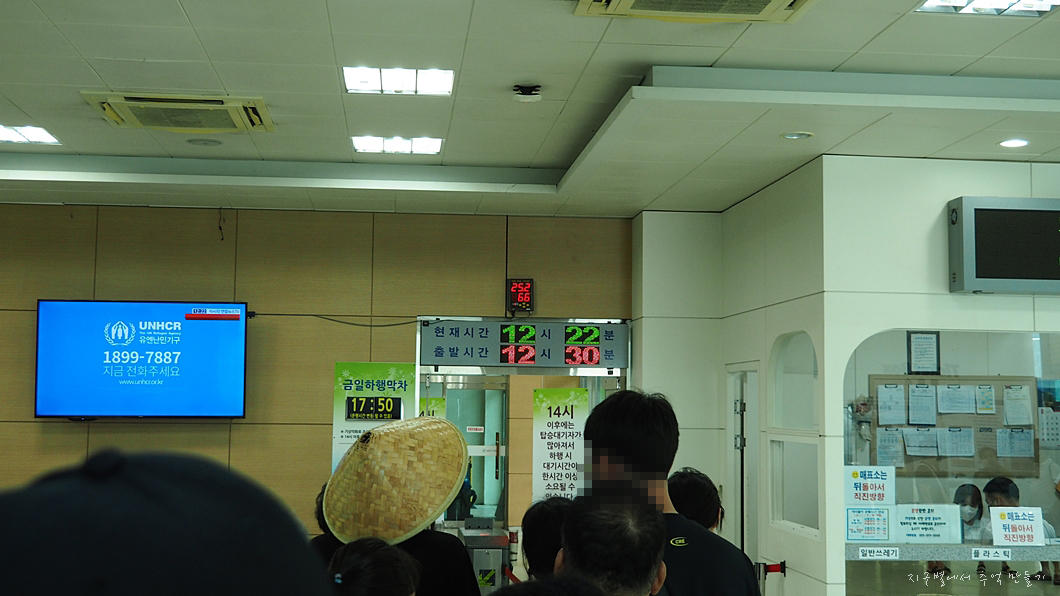 상부 정류장에서 대기줄에서 30여분 기다렸다가 하산합니다.