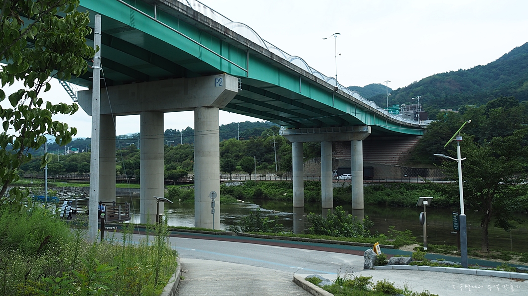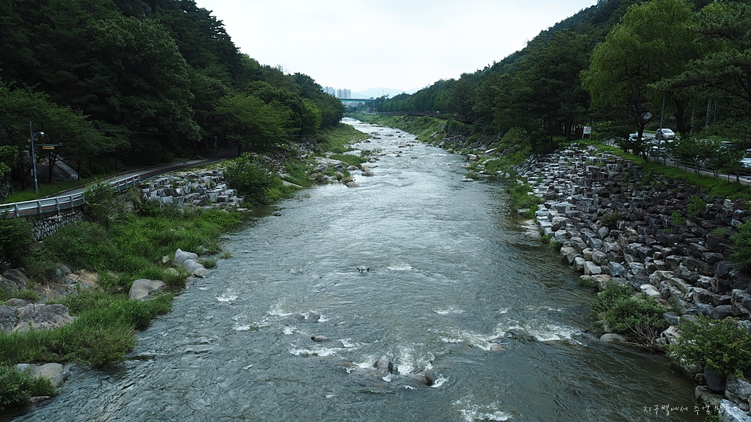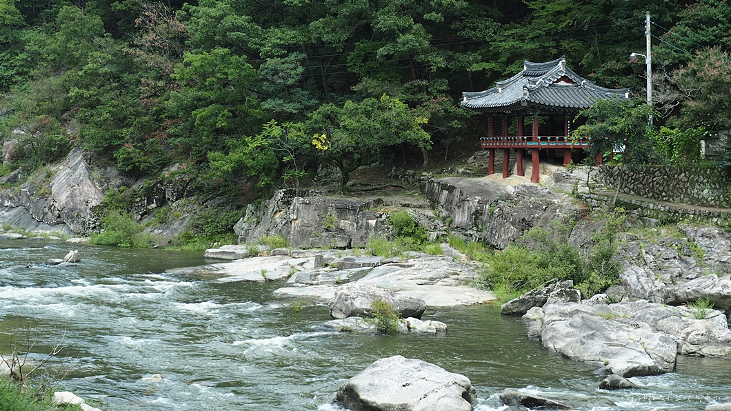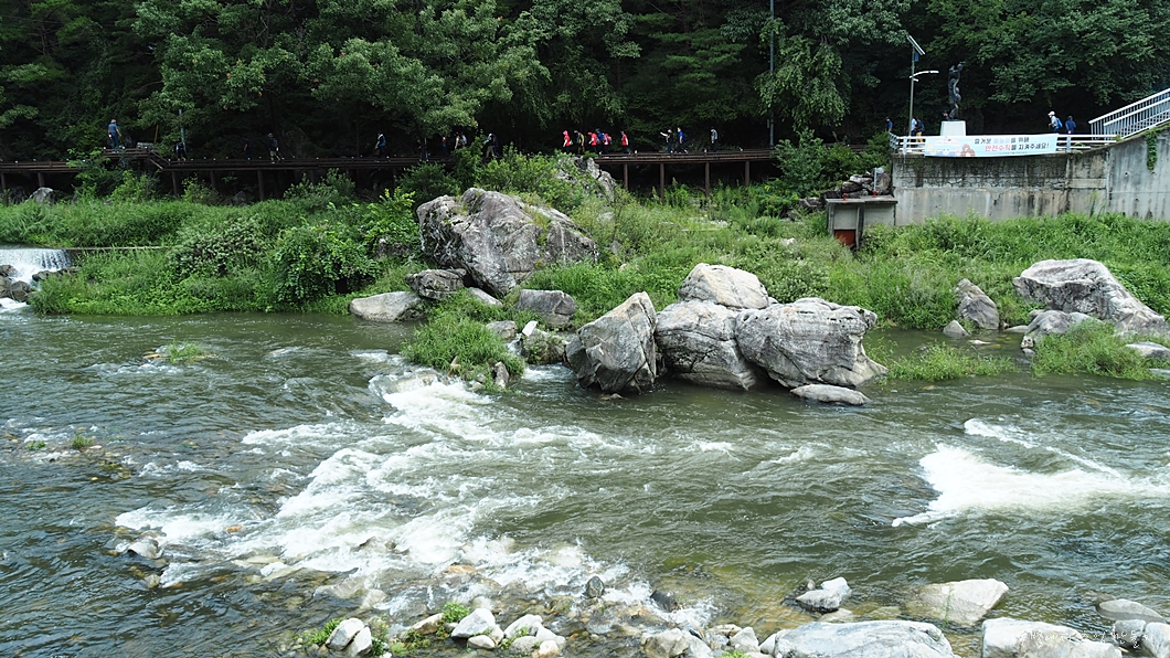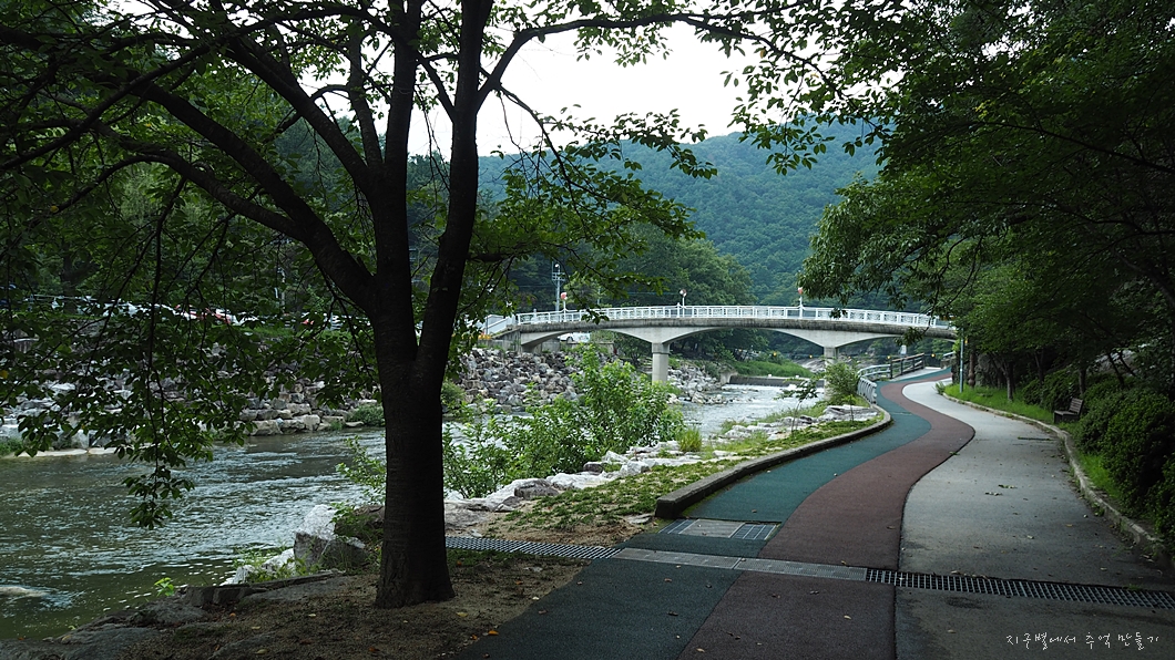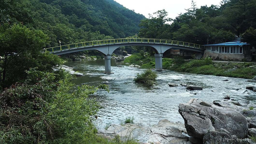 다리 아래에서 산행을 마무리하고 강을 따라 거슬러 올라가서 건계정까지 이동합니다.