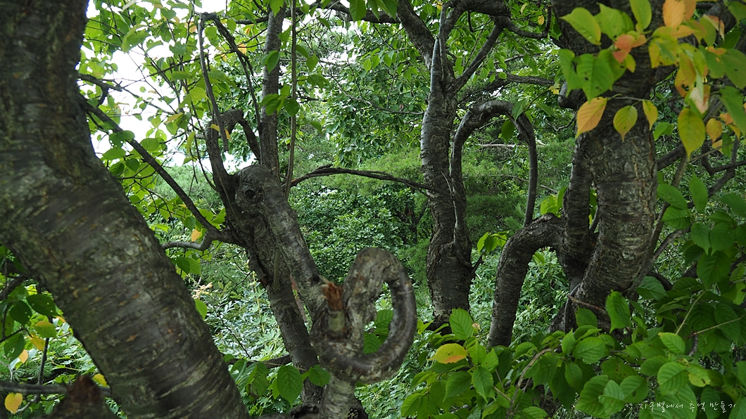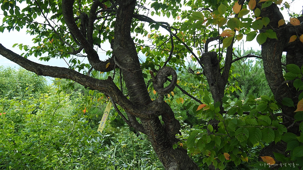 산불 근무하시는 분들이 무료한 시간에 만든 작품(?) 같은데 나무 하나를 완전 집단 연리목으로 만들어 두었습니다.