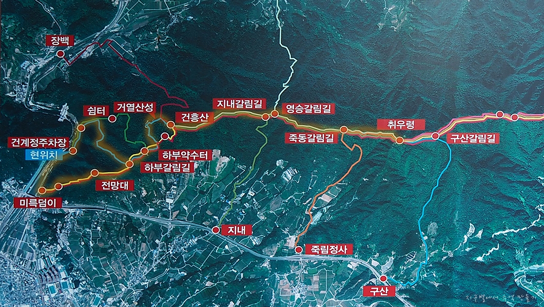 이런 산군들 사이에서 건흥산은 동네 뒷산 개념으로 건계정에서 넉넉하게 1시간이면 오를 수 있는 곳이구요.