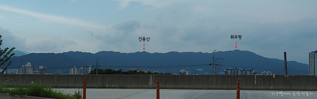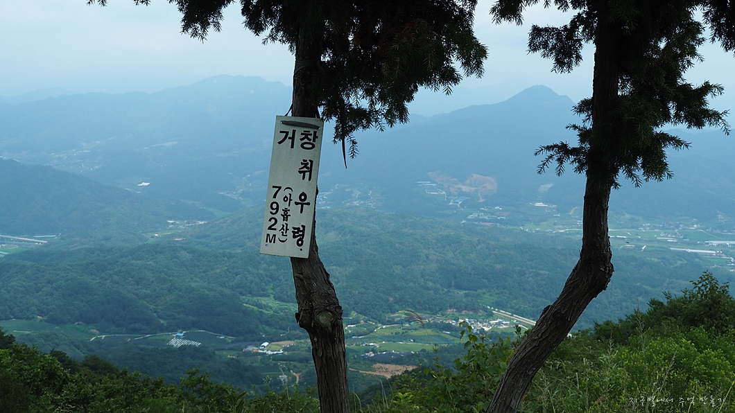 동쪽으로 가조 들판에 솟아 있는 박유산이 겨우 보이네요.