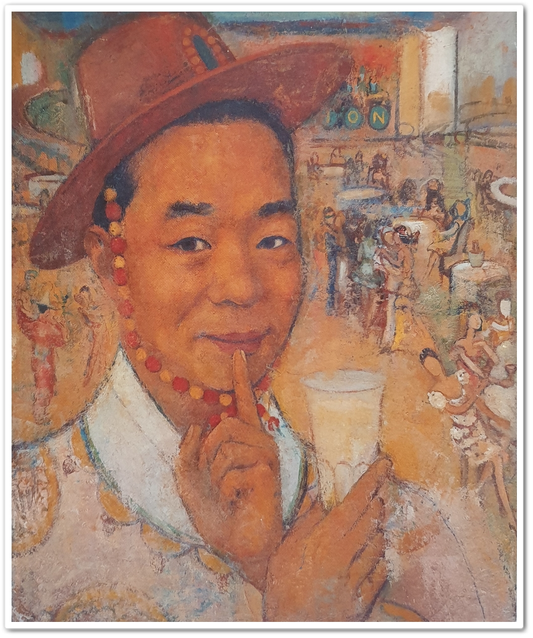 그가 식객으로 있던 부잣집의 가족을 그린 이야기도 있고 또 다른 해석으로는 그의 가족들을 그렸다는 해석도 있는데 암튼 이 그림에서 맨 왼쪽 두루마기에 진한 고동색 구두를 신은 이는 화가 자신입니다.