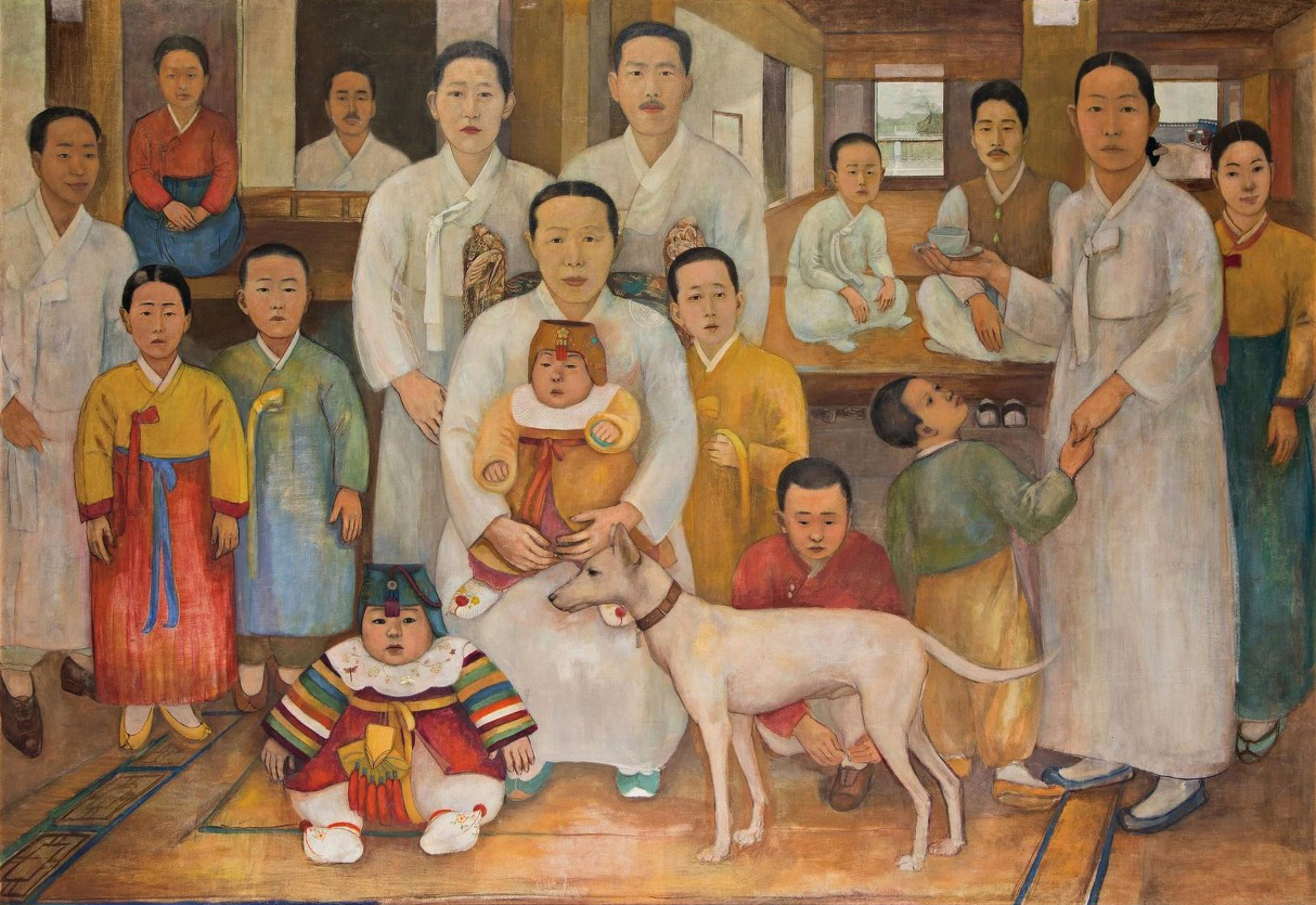 우리나라 근대기에 그려진 대가족의 초상화형 그림으로는 유일한 이 작품은 당대의 주거형태나 복식 형태를 연구하는 귀중한 자료가 되기도 한답니다.