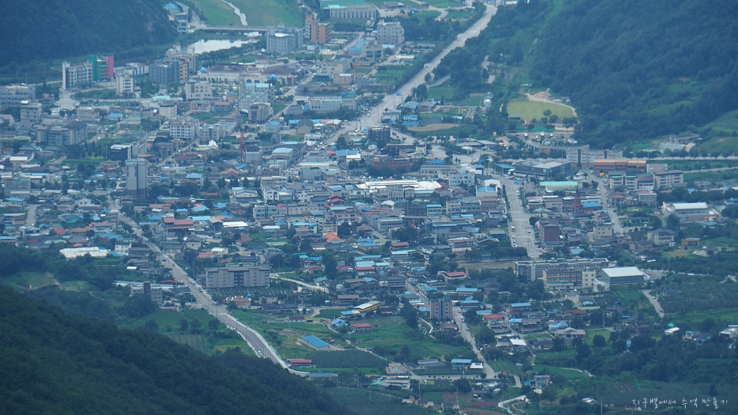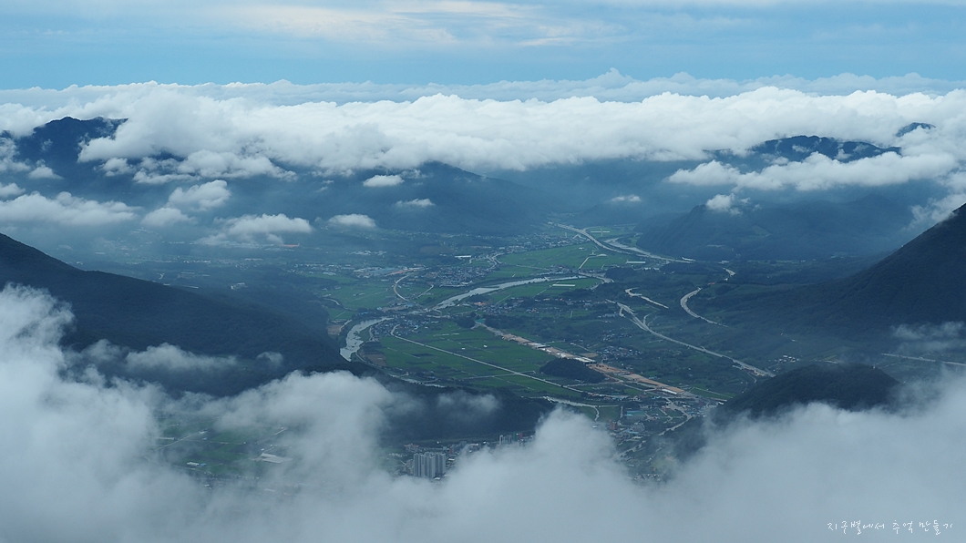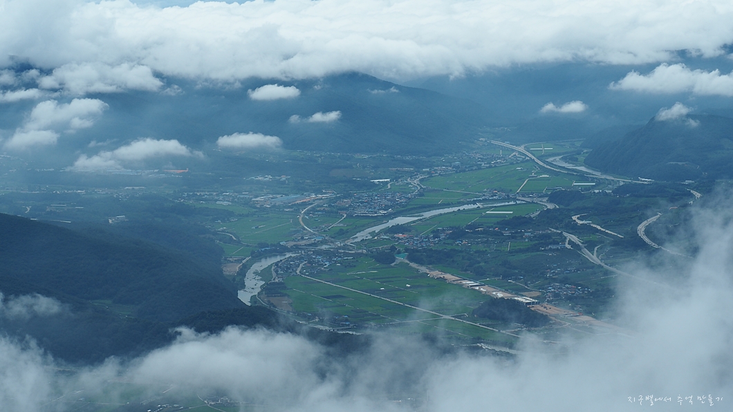문경시내가 오른편 안개에 가려서 보이지 않네요.