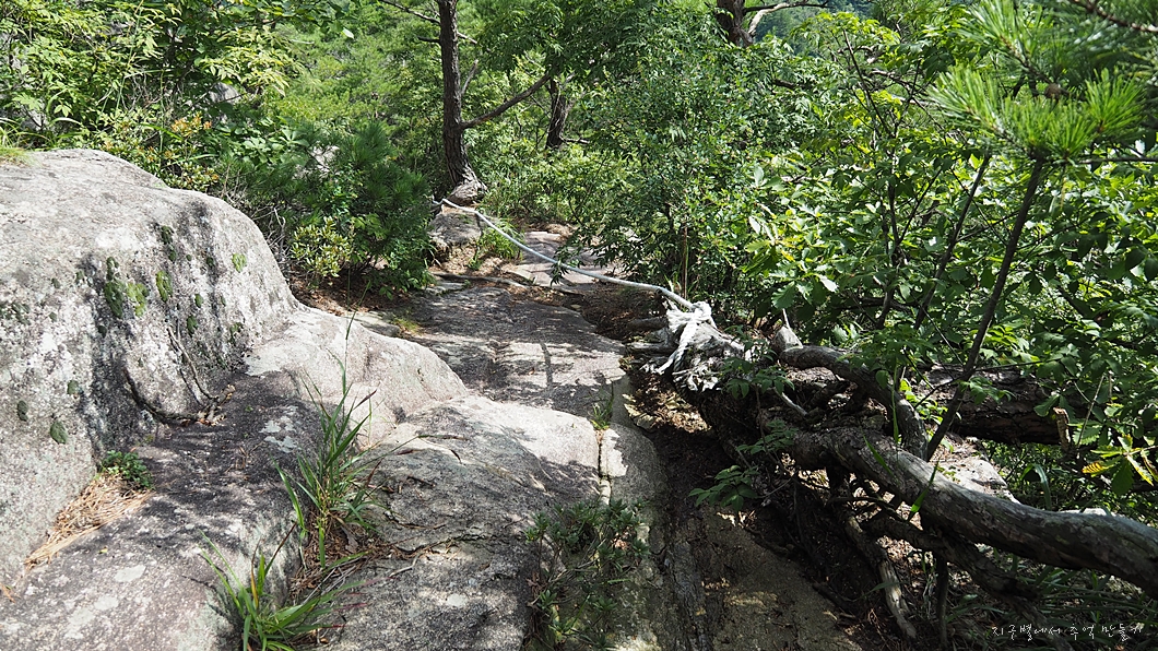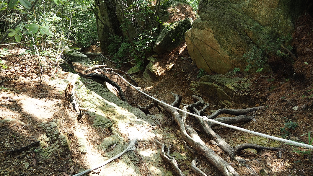 밧줄도 몇 번 잡고 경사가 심한 하산길을 30여분 내려가면,
