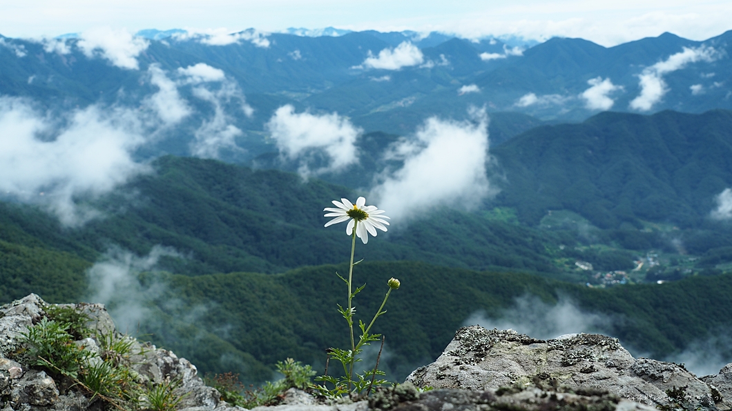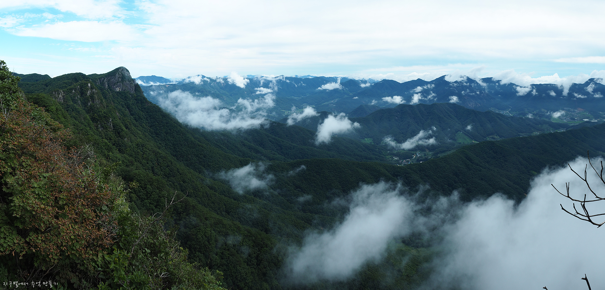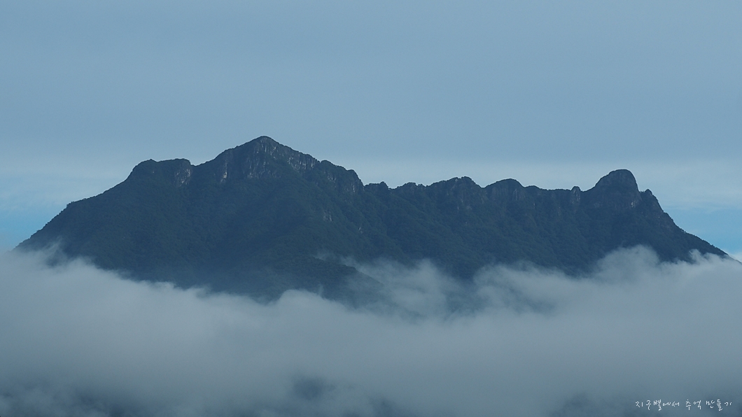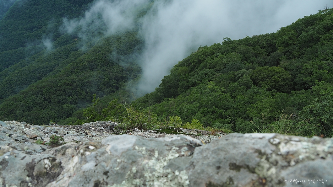 살짝 살짝 벗어나는 안개속 봉우리들을 보면서 조망 놀이를 한참 즐겨 봅니다.