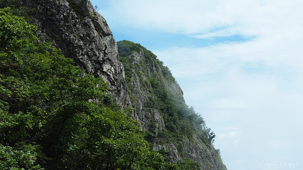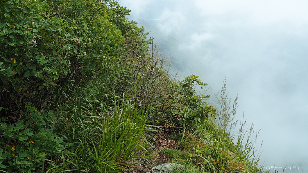 아찔한 능선 절벽길에 안개가 가득하여 위험하기도 하네요.