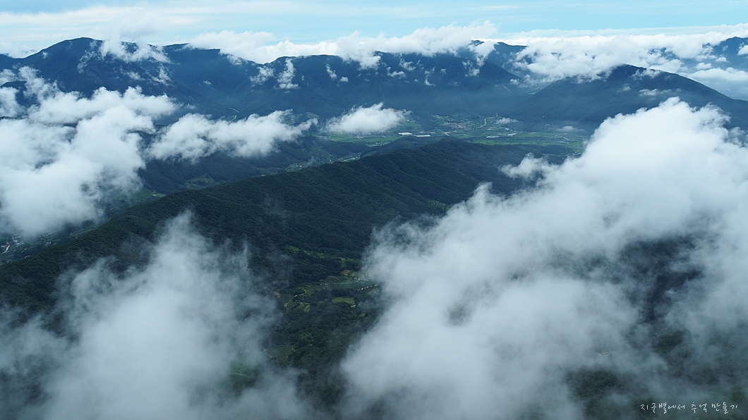 앞쪽의 황장산이나 대미산도 안개에 가려 보이지 않습니다.