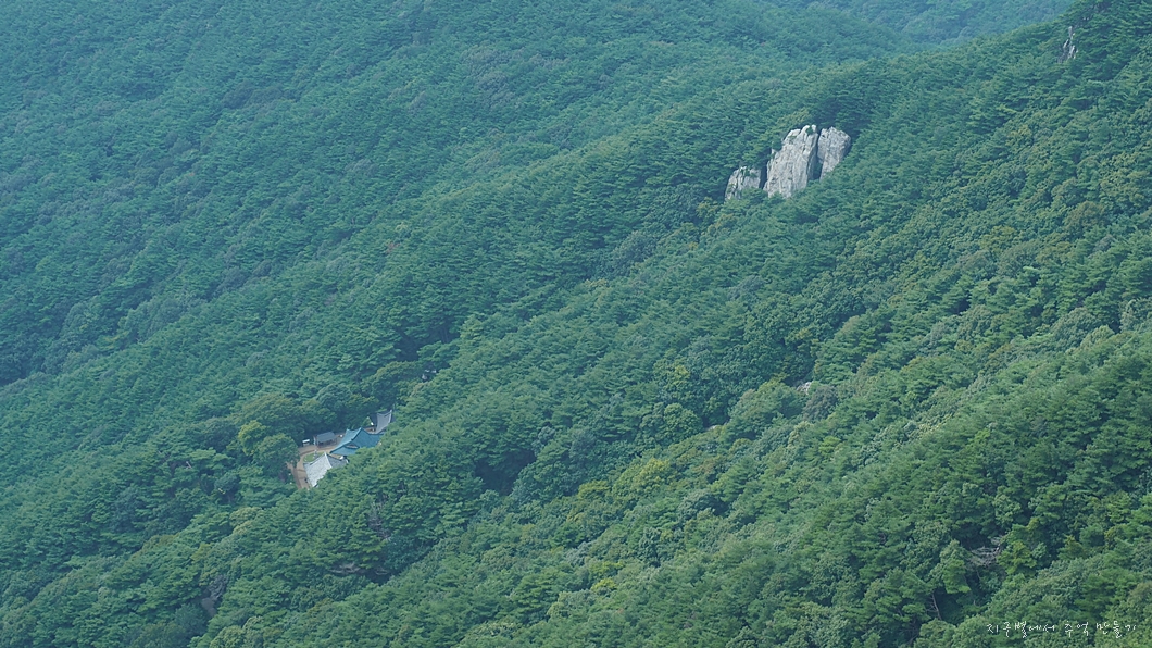 천왕봉은 건너편 대견사까지 전기차를 타고 올라와서 이곳으로 산행을 하면 3km 능선 거리로 1시간만에 올 수 있답니다.