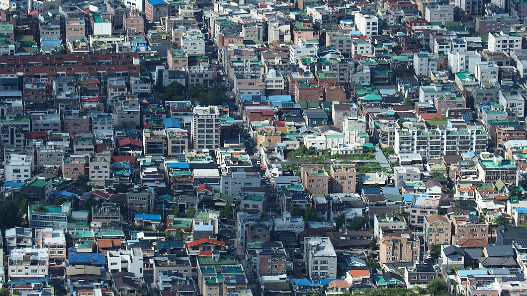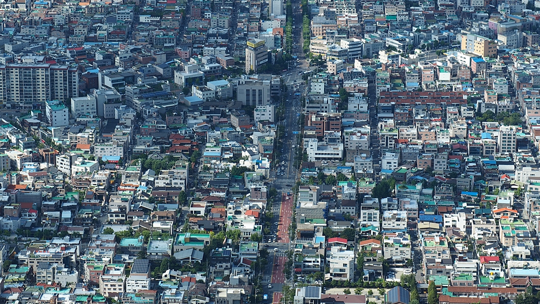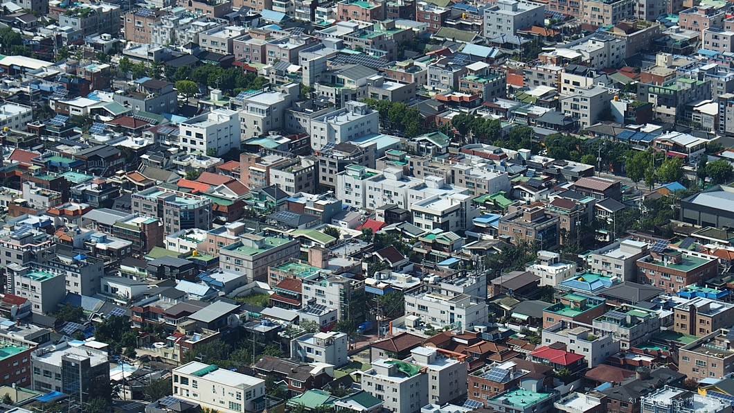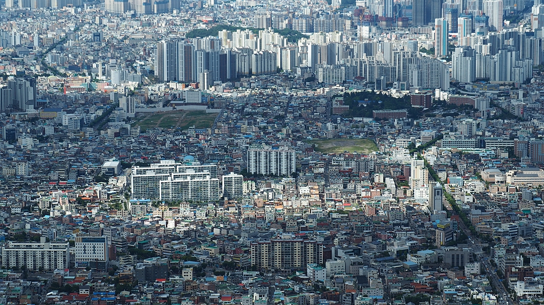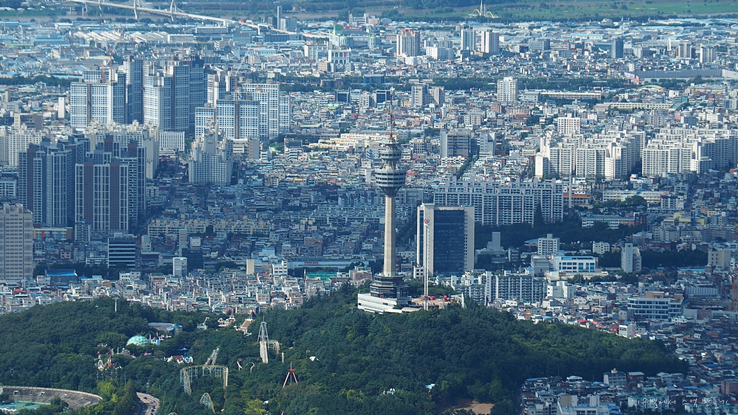 능선 중간쯤 조망이 열리는 곳에서 바라 본 시가지 파노라마 풍경