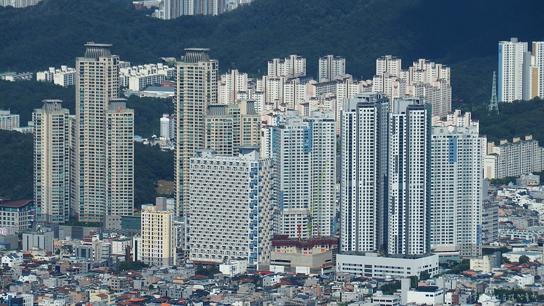 가장 우측으로 조금 보이는 산은 신불산으로 생각이 되네요.