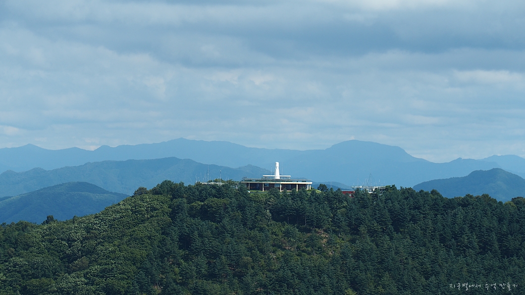 가운데 뾰쪽한 봉우리는 수성구 조망 명산 용지봉. 얼마전에 야경 산행으로 올랐던 곳입니다.