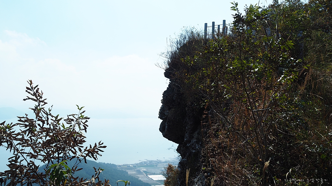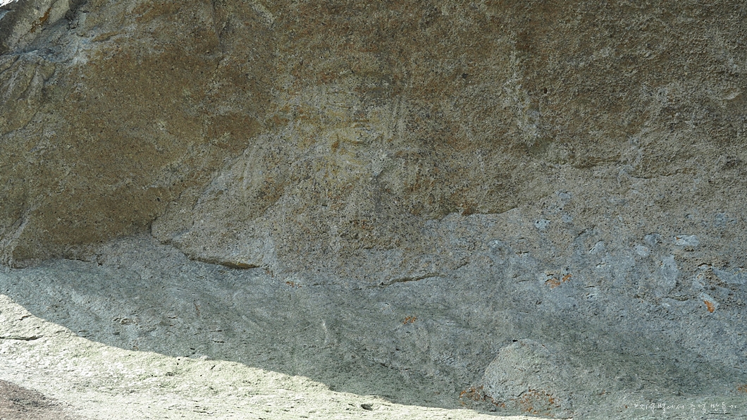 특이하게 생긴 바위인데 이곳 비스듬한 바위 꼭대기 바로 아래에 마애불이 새겨져 있는 것도 여간 신기한 일이 아닐 수 없습니다.
