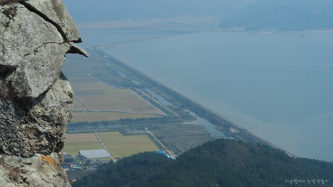 좌측으로 득량만을 메꿔 간척한 엄청난 크기의 황금 들판이 내려다 보이네요.