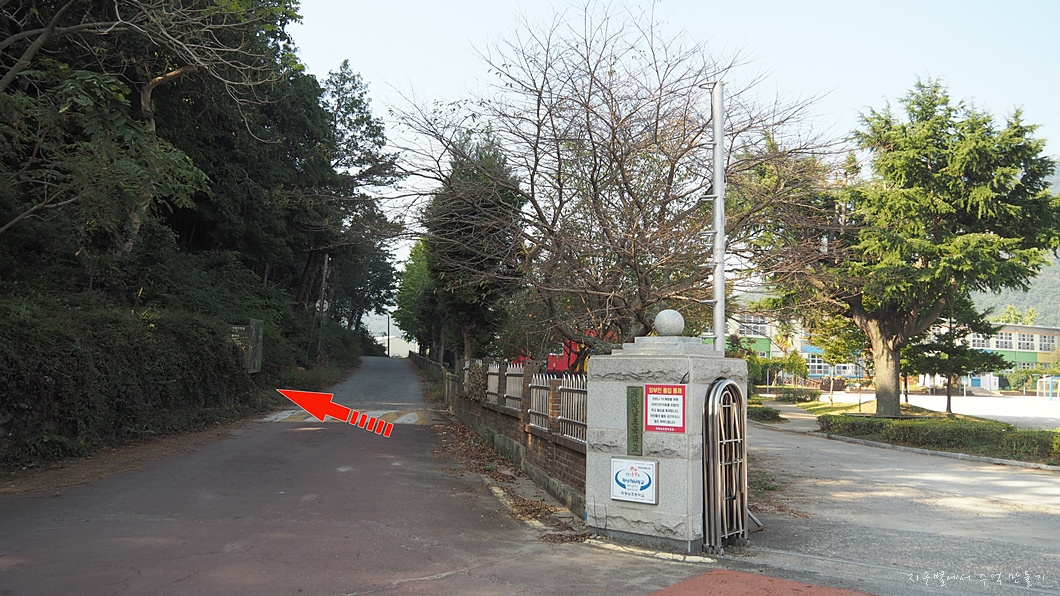 대구에서 3시간 가까이 운전하여 이곳 초등학교 정문에 도착, 들머리에 있는 안내판 지도를 보고 있으니 바로 앞의 주택에서 한분이 나오더니 아주 친절하게 이런저런 이야기를 많이 해 주네요.