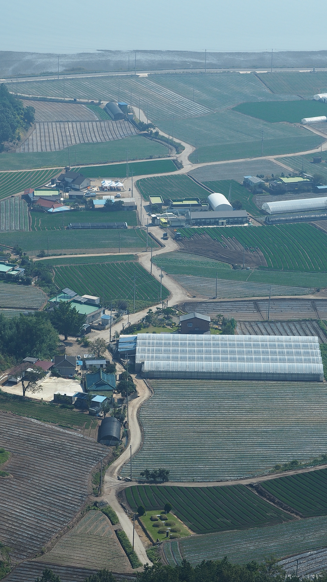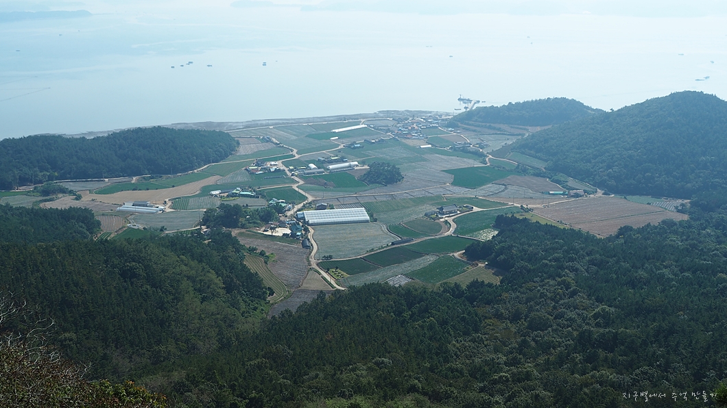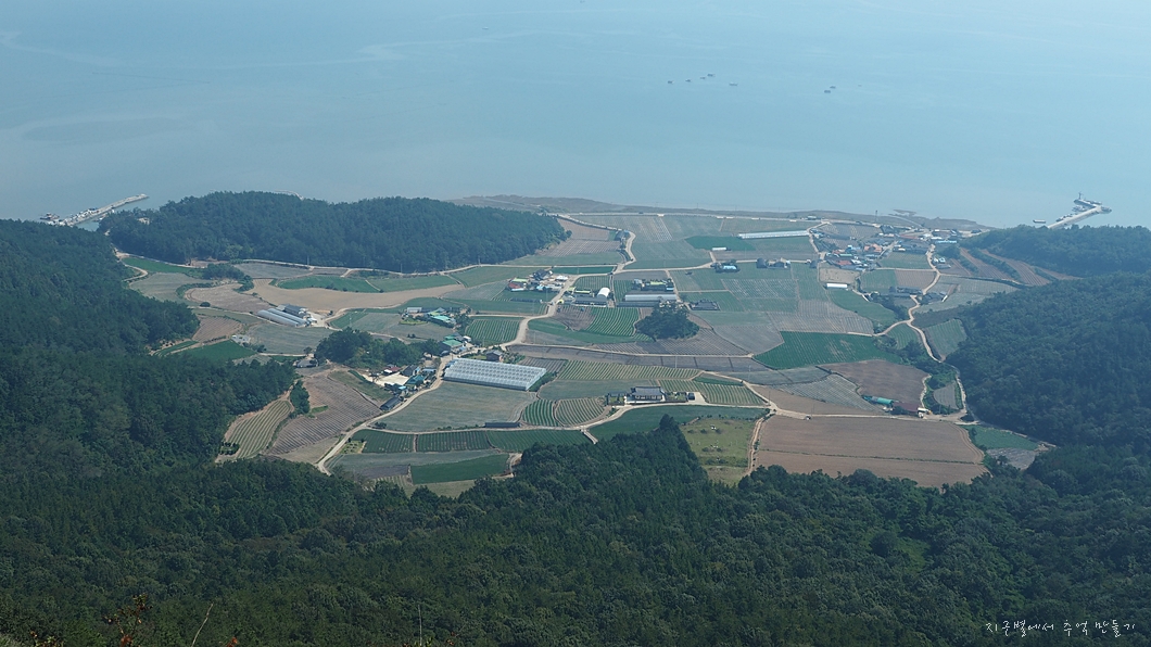 안개가 걷히지 않아 깔끔한 바다 풍경이나 바다 건너쪽이 제대로 조망은 되지 않지만 아래쪽 바닷가 마을들은 한없이 평화롭습니다.