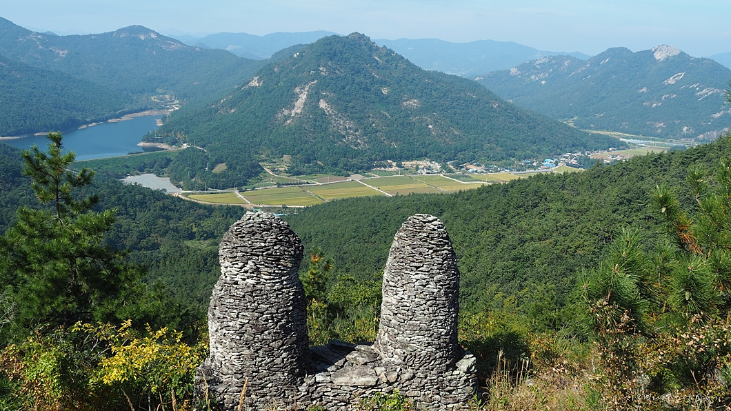 봉우리 꼭대기에는 거의 어김없이 돌탑들이 세워져 있습니다.