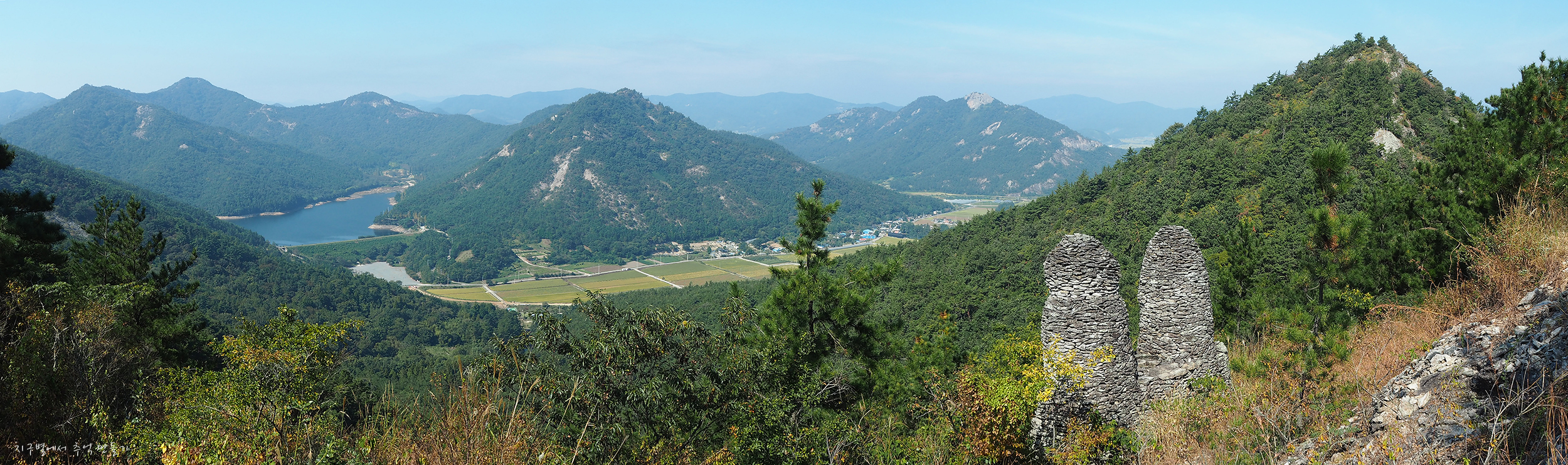 저수지 덕분에 그 아래에는 풍요로운 들판이 형성되어 있구요.