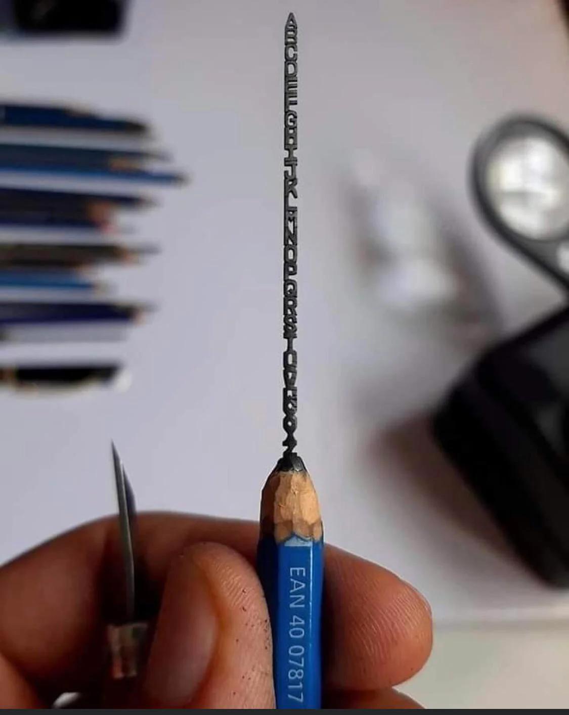 Chien Chu Lee 작품의 샤프 펜슬의 심에 조각한 알파벳.