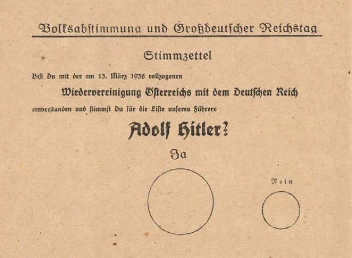 1938년 히틀러가 조작한 투표 용지로 독일은 오스트리아에 병합을 요청했습니다.