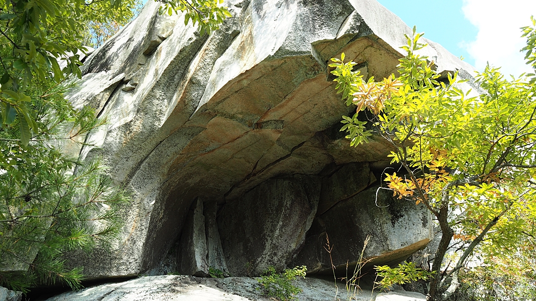 아랫쪽에 고여져 있는 작은 돌 두개 빼면 곧장 무너질것 같은 커다란 바위턱.