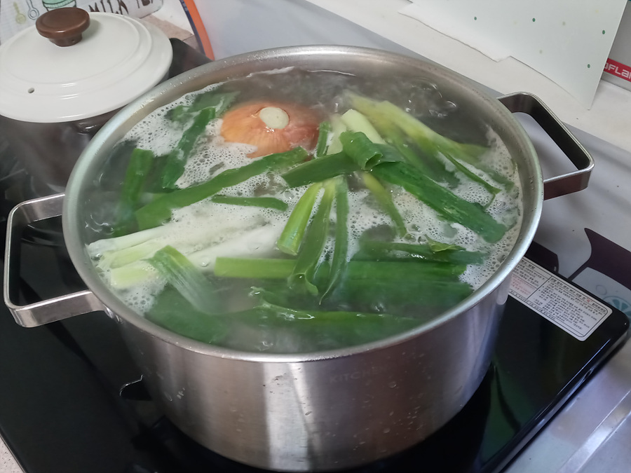 제일 먼저 돼지뼈 핏물 제거 작업한 후에..(가능하면 전 날 저녁에 미리..)
