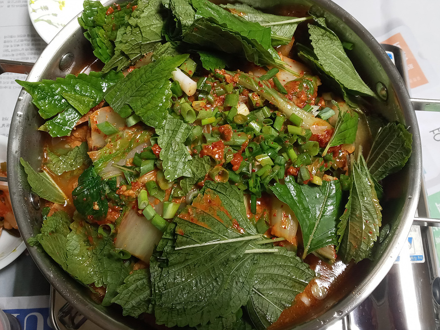 들깻잎과 들깨가루를 듬뿍 넣은 후 끓이니.. 웬만한 식당 맛에 뒤지지 않았습니다.