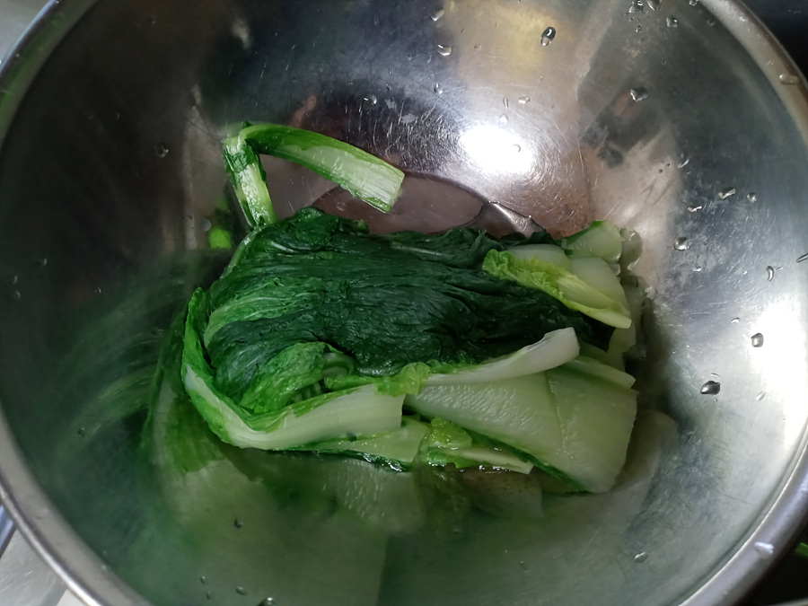 얼갈이배추에 된장 양념을 한 후에 육수를 만들었습니다.