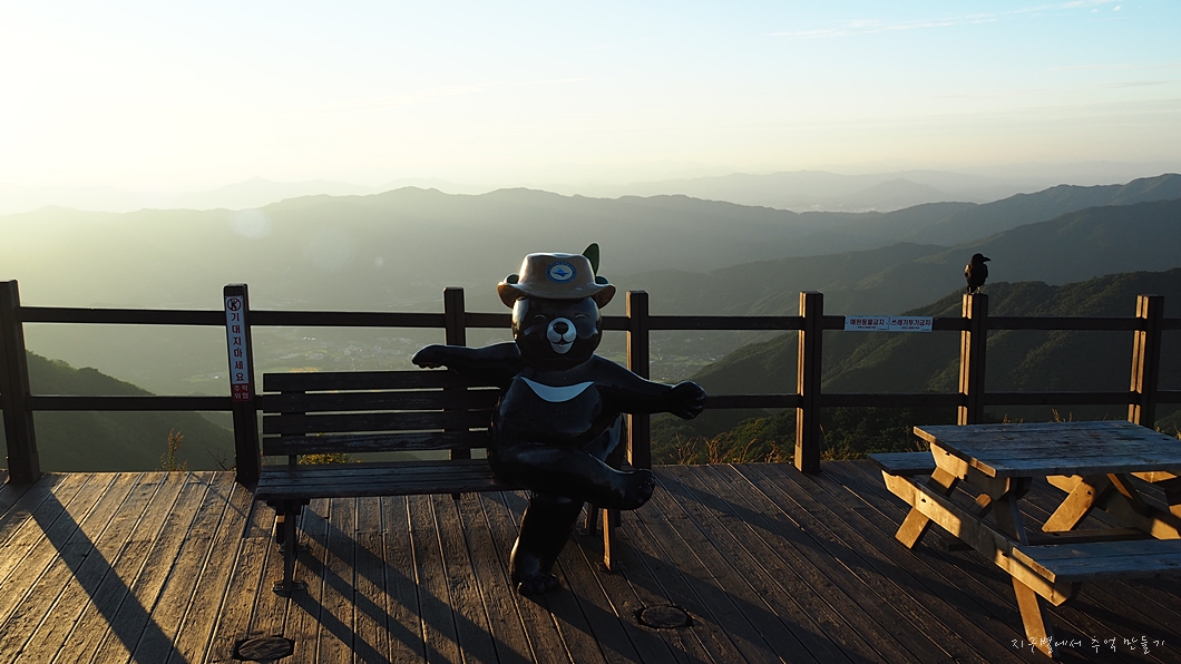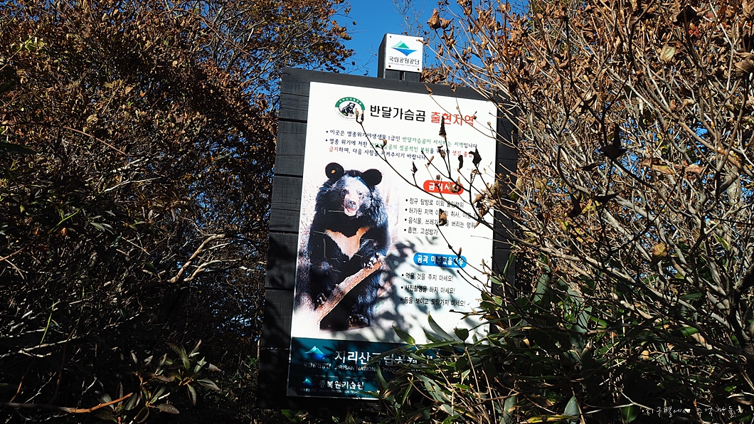 국립공원에서 언제부터인지 비탐 입구를 알려주는 표시(?)로 이렇게 반달곰을 세워 두었네요.