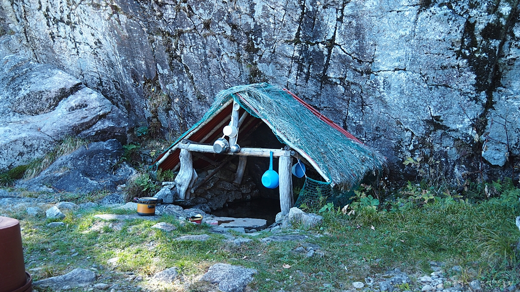 반야봉 주변으로는 물이 없어 사람이 거주할 수 없는데 이곳 묘향대에만 석간수가 흐릅니다.