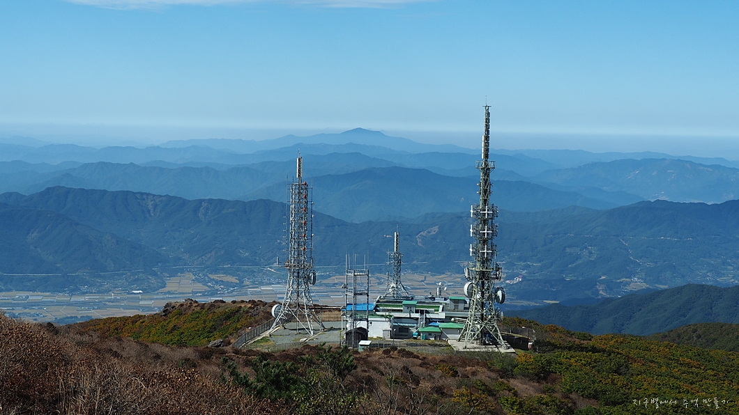 안테나 뒤로 멀리 무등산