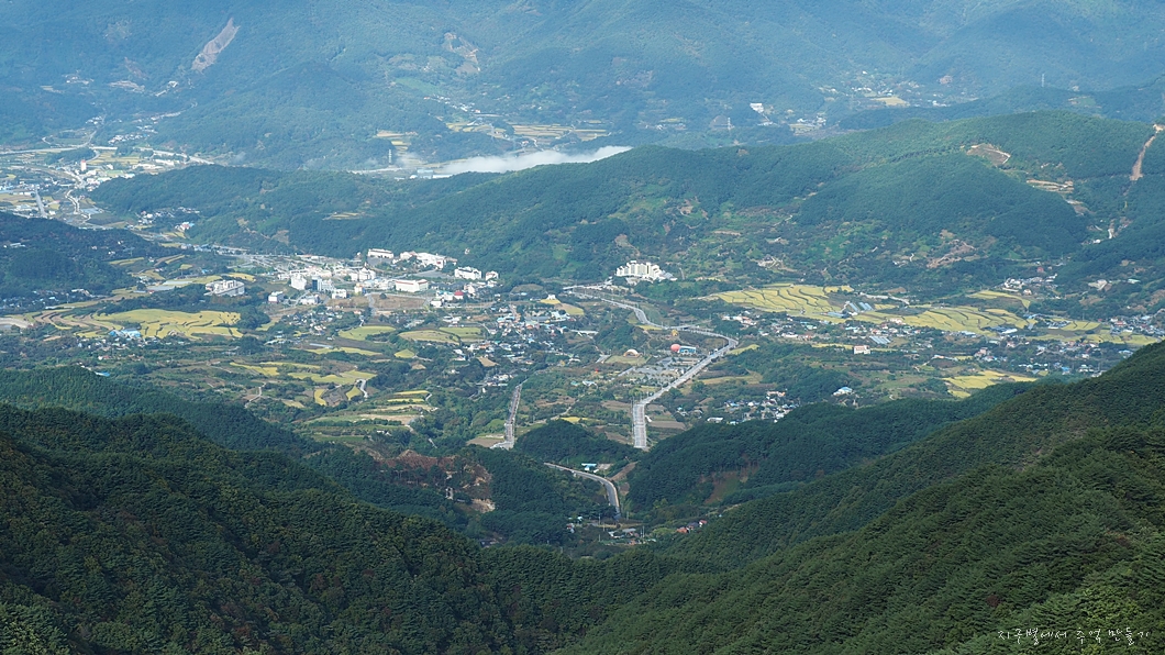 바로 아래로 내려다 보이는 산동면 방향.