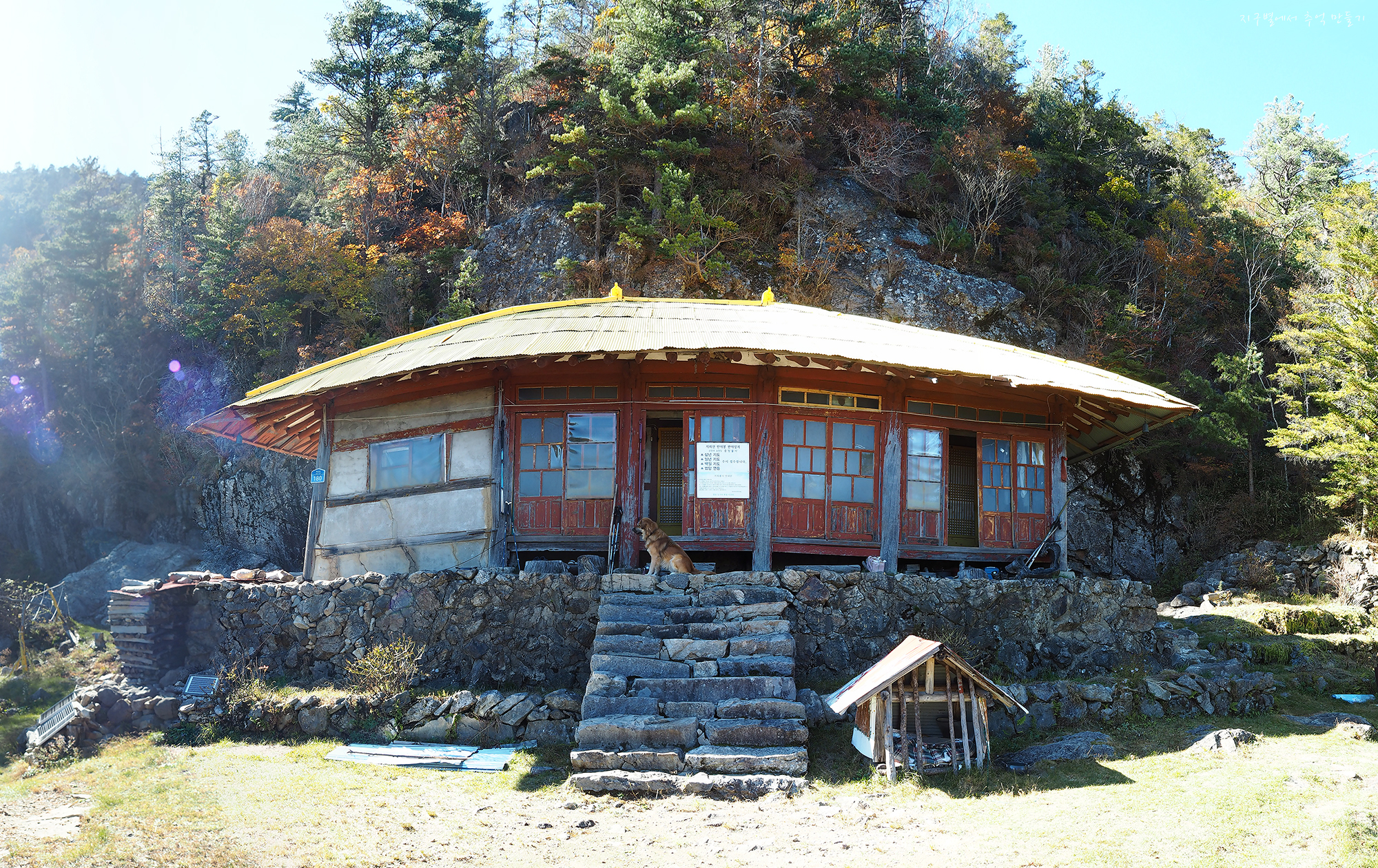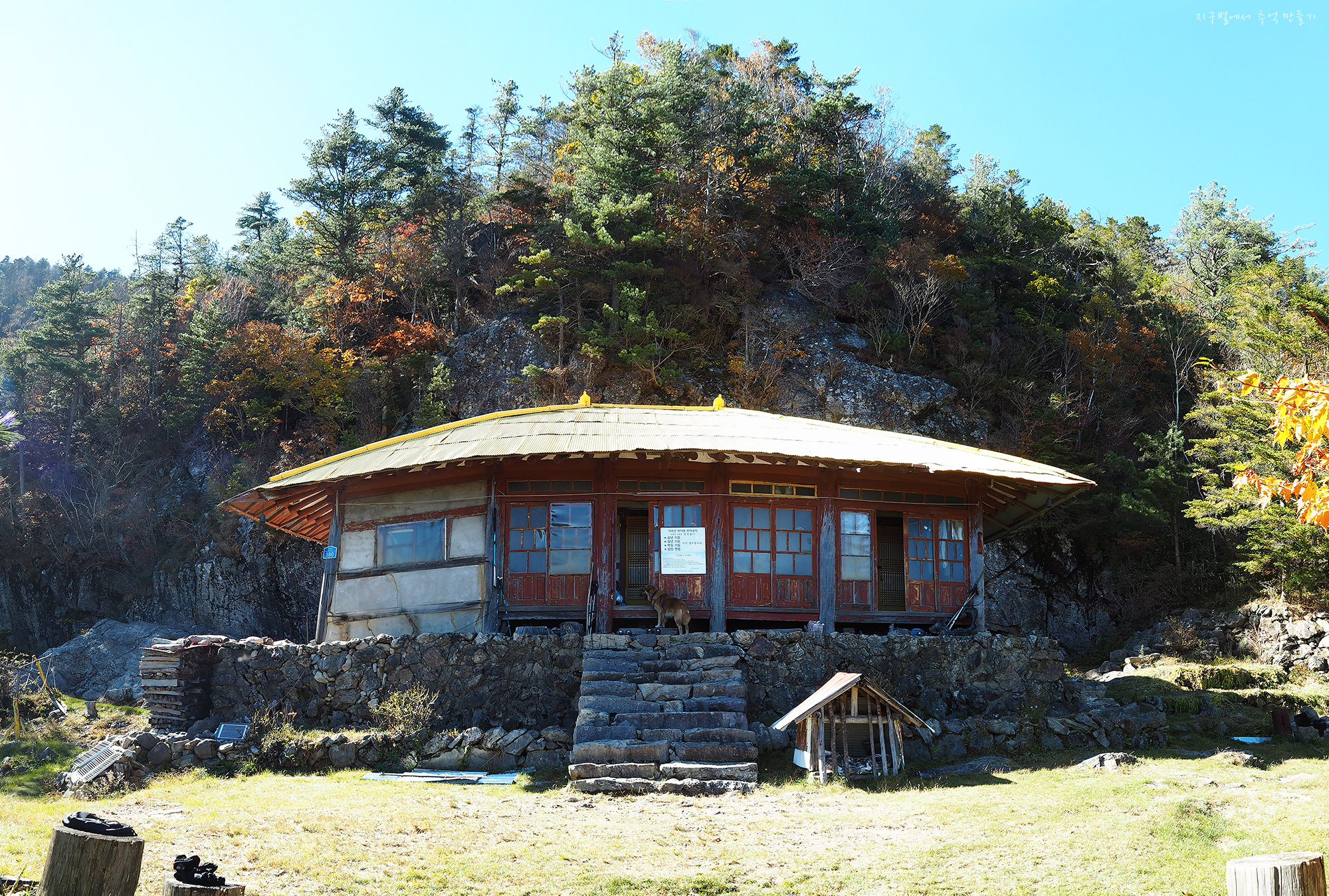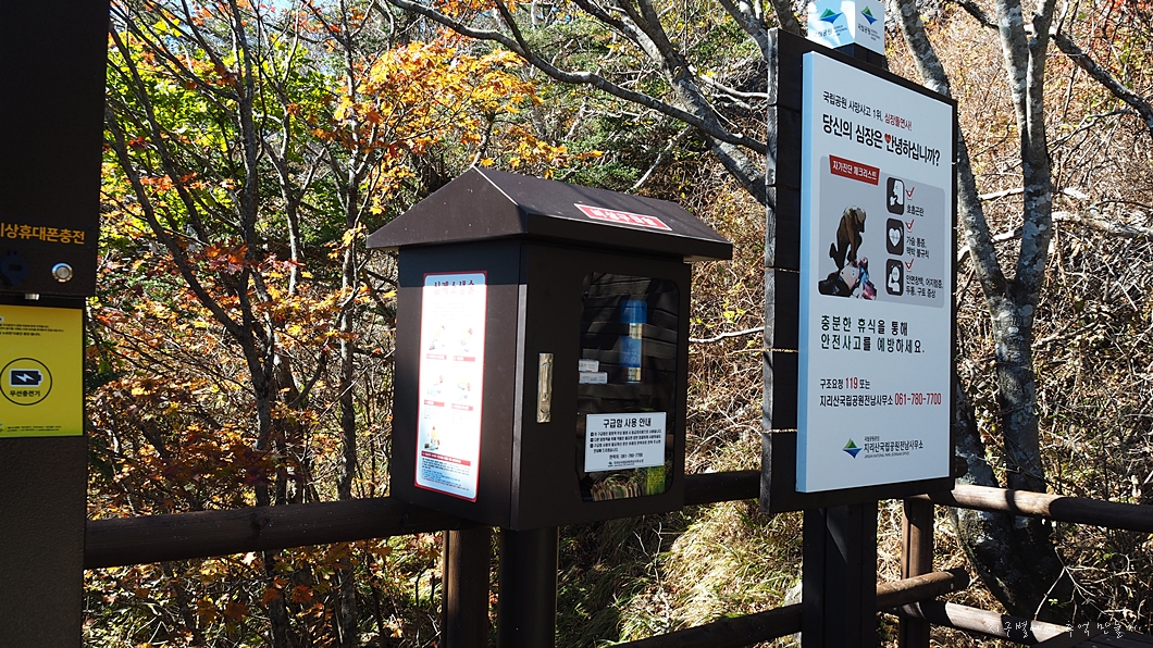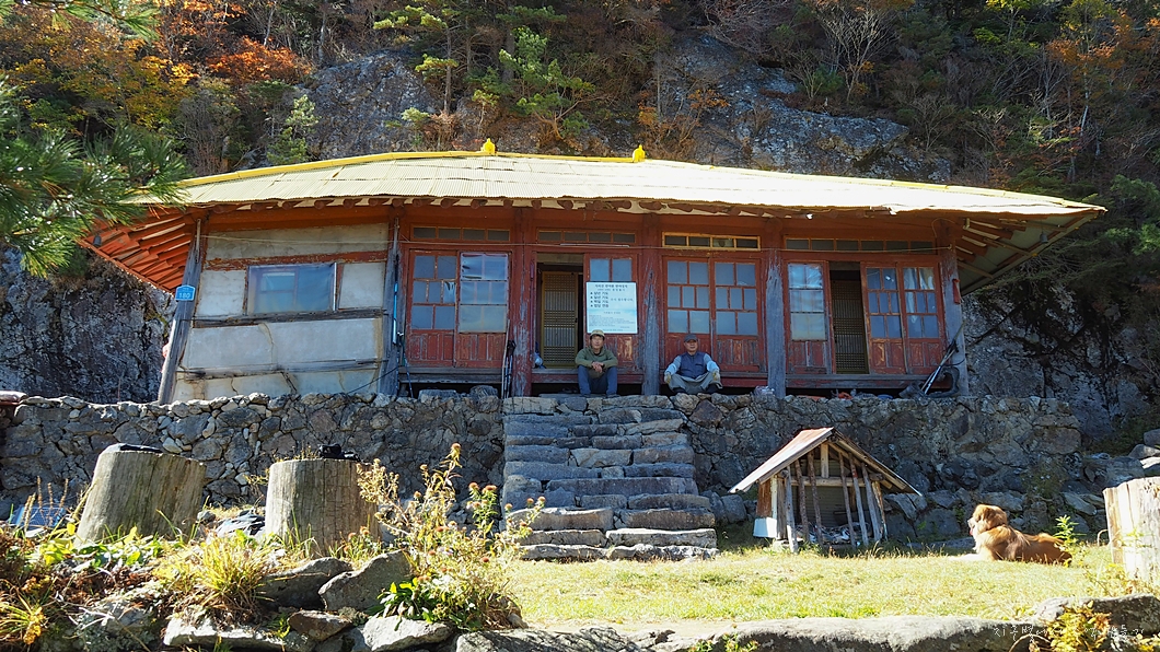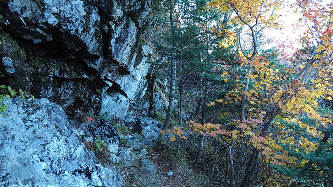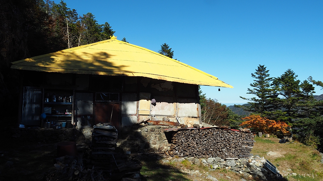 호림스님의 얘기로는 작년까지는 누런 황금색으로 칠해 놨었는데 종주길 멀리서 보니 산사태 자국처럼 보여 이걸 지금은 완전 병아리 노란색으로 칠해 놨답니다.
