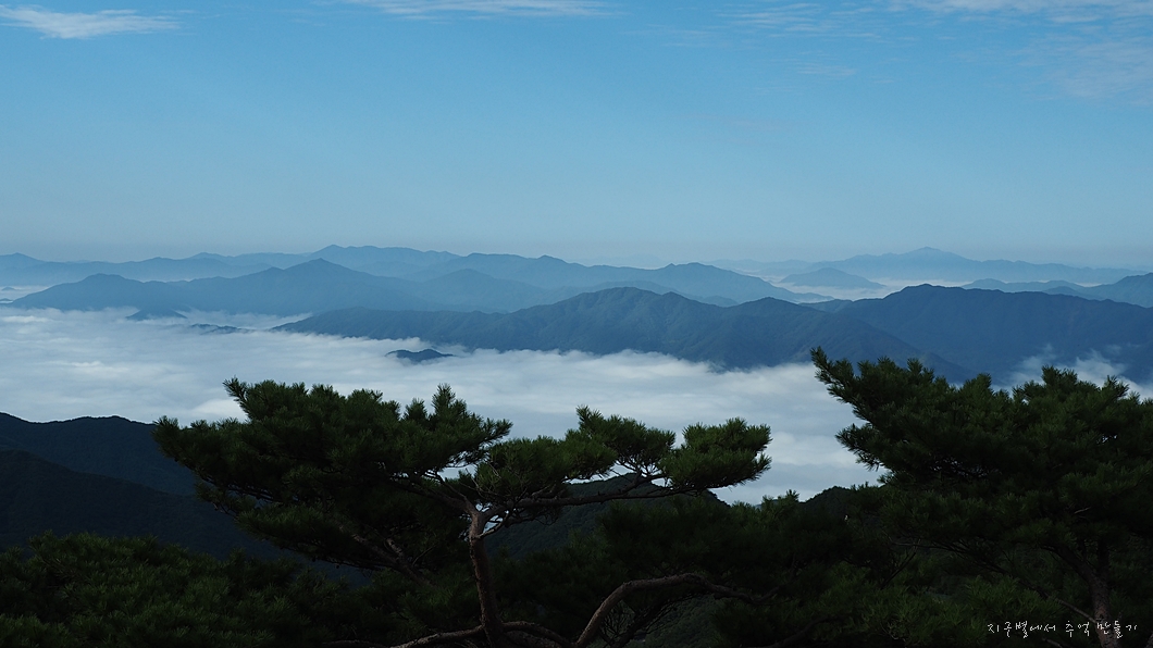 안개 위로 서쪽 전라도 방면의 산들이 솟아 있는 모습이 그림 같습니다.